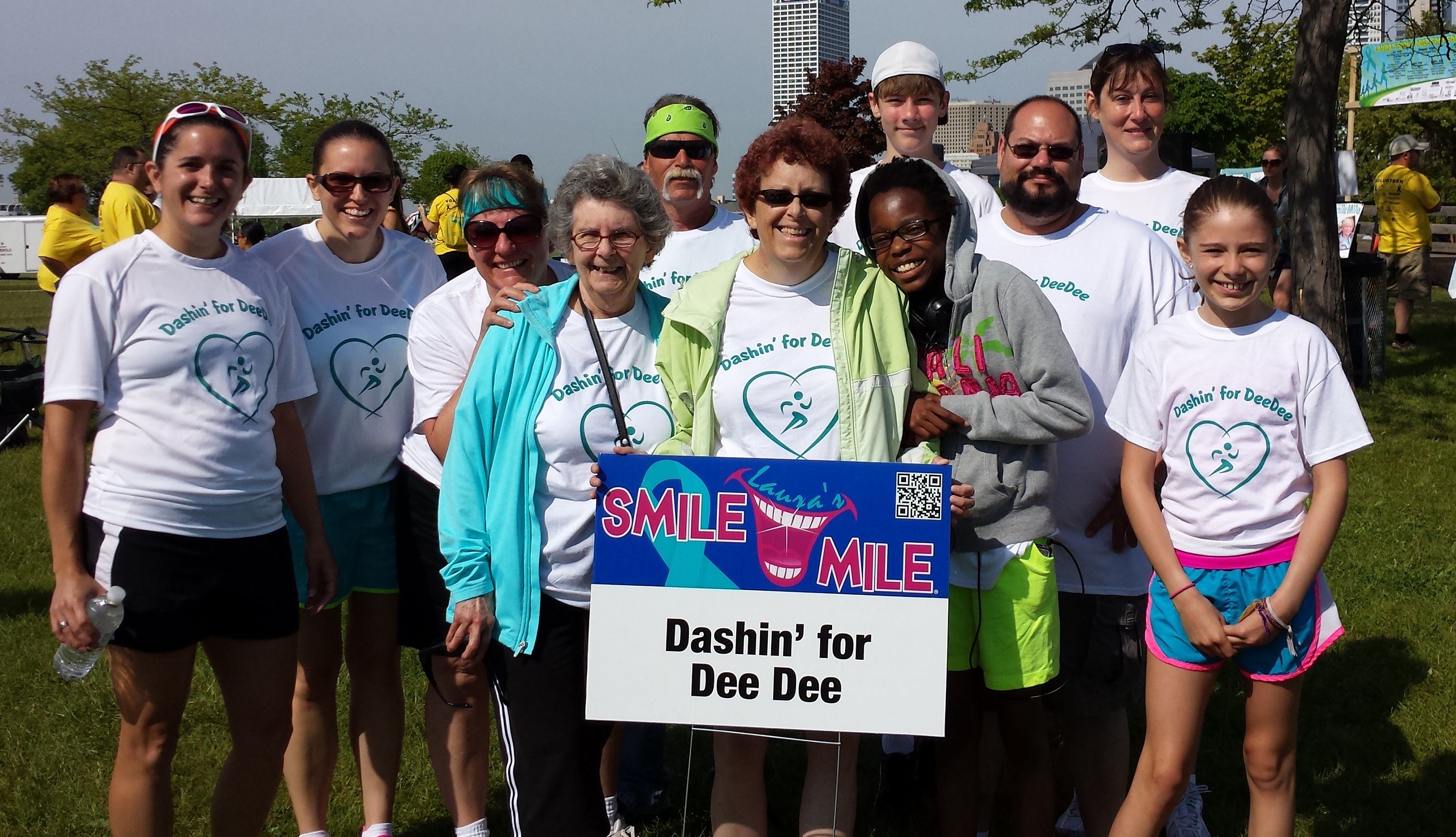 "This was our team for the Laura's Smile Mile Run/Walk in Milwaukee. We made the team and the shirts for my Aunt DeeDee who is currently fighting ovarian cancer. "