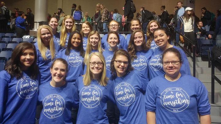 "We are from Liberty University and our Hall ordered these tee shirts from CustomInk. Our experience with CustomInk was so easy and the shirts turned out great! We took this photo one Monday morning that we all met together at our schools convocation. "