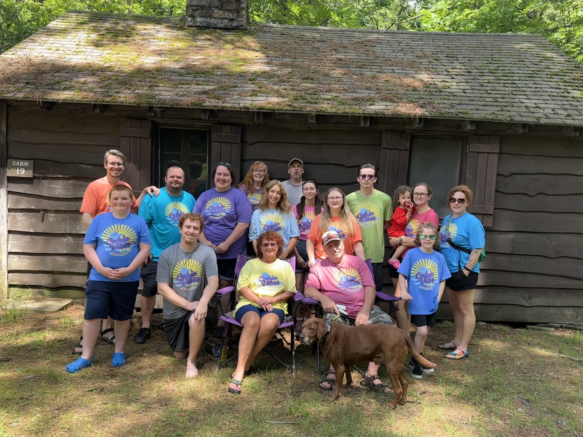 "Our family rents cabins at a different NYS Park every summer - last summer was the 19th year! Lots of these adults were little ones when we started. This is about the 10th year we've used Custom Ink for our family shirts, and they've become one of the highly anticipated parts of the trip - the unveiling of the annual shirt. Even those who can't make it for one reason or another often request a shirt, anyway. Many of us wear them for much of the week we're there - so comfortable, and rest assured they wear very well after many, many years of washing. And it's so fun to create the design each year, and everyone gets to choose their own color, which they love! "