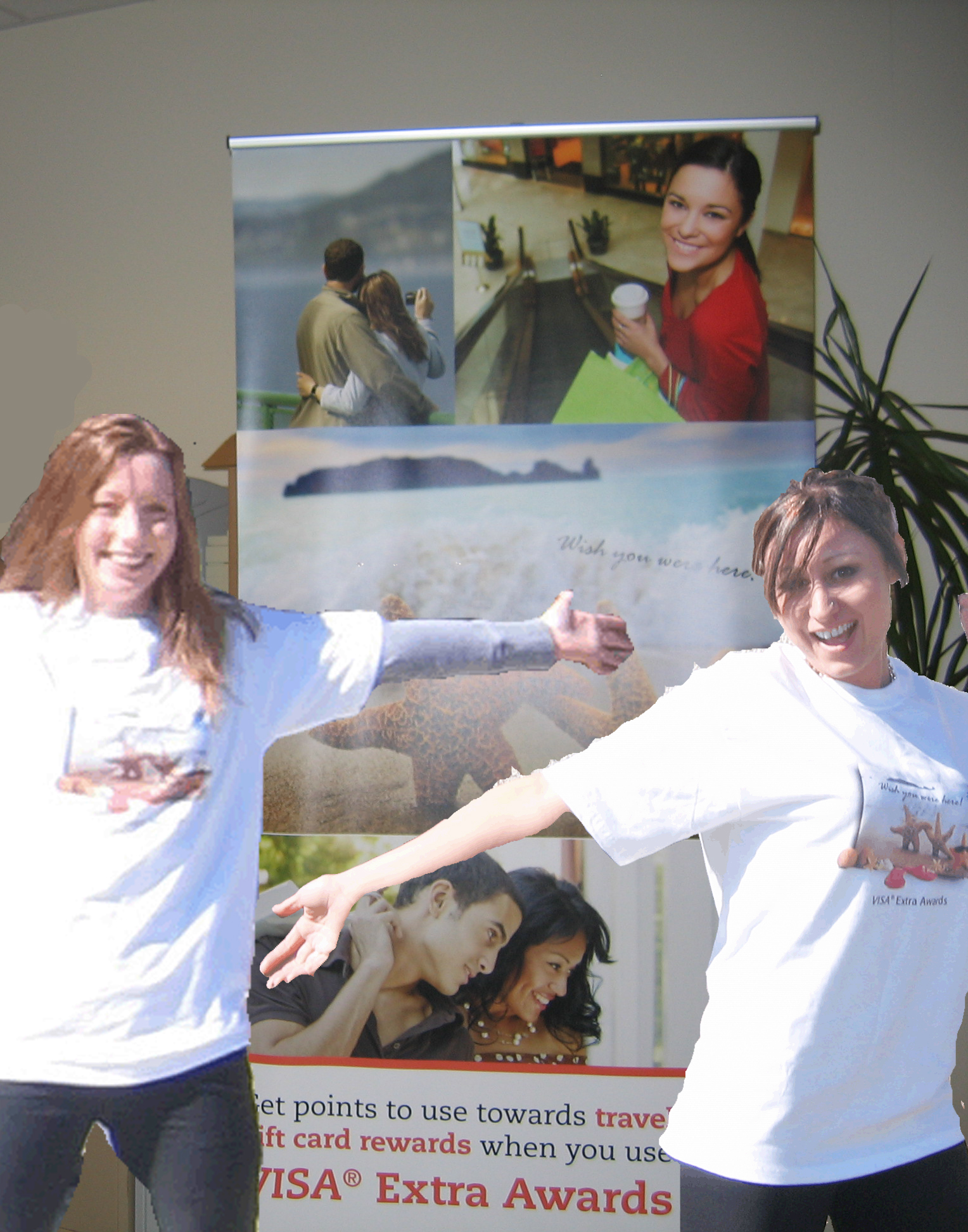 "I work in our marketing department. We wanted to create excitement amoungst our staff so we decided to host a kick off party with games and snacks. We ordered the shirts to promote Extra Awards (a product we offer) and give staff shirts to wear on casual friday. Each friday Liz and myslef (shown in photo) would pass out gifts and prizes to all staff who wore their shirt. I submitted my order online and a representative called me and actually helped me save our company money by providing me with print options. Thank you!"