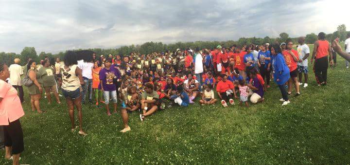"Family reunion group picture in the making at Plum grove Forest preserve in South Chicago Hts IL July 23 2016"