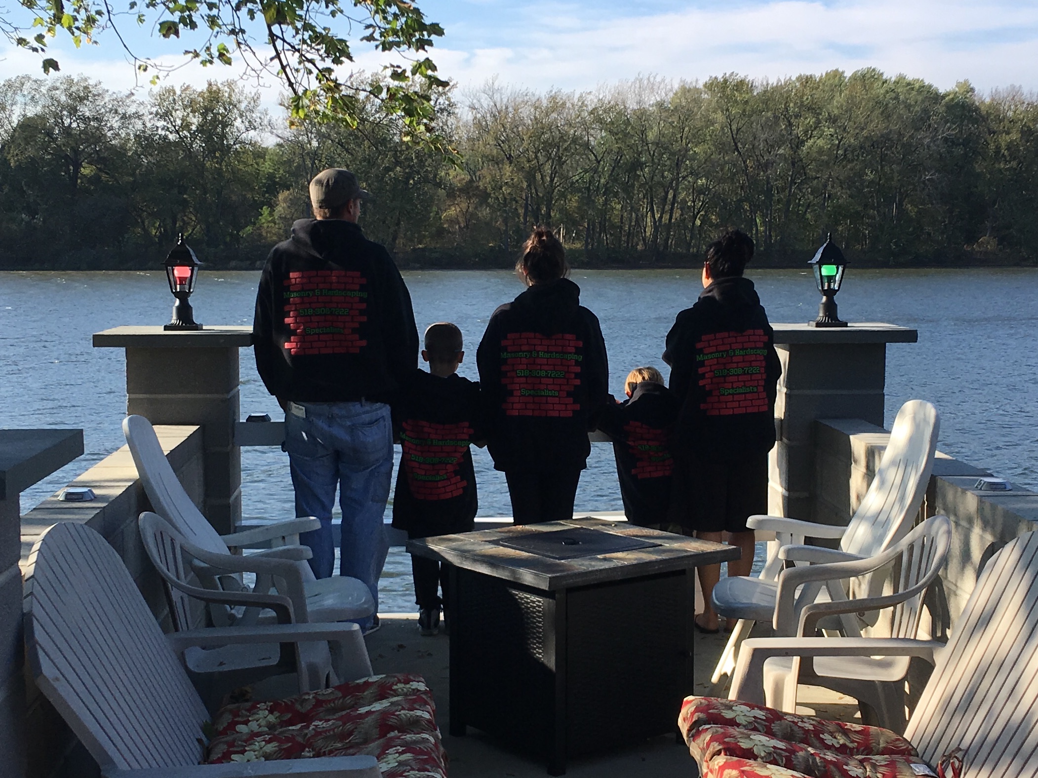"This is my family, all wearing sweaters I purchased. But we’re standing on a wall/patio I built over looking the river! Terrific views for a terrific customer. Everyday I wore the sweater I got questioned for a business card or for data on what exactly I do. I love the sweaters and will definitely be ordering again!"