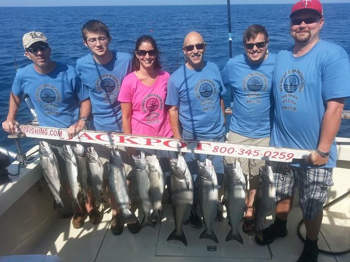 "The shirts were made for a family reunion. Everyone loved them. We were in Wisconsin and on this day, the adults and older grandchildren went salmon fishing in Lake Michigan. I think the shirts brought them good luck.