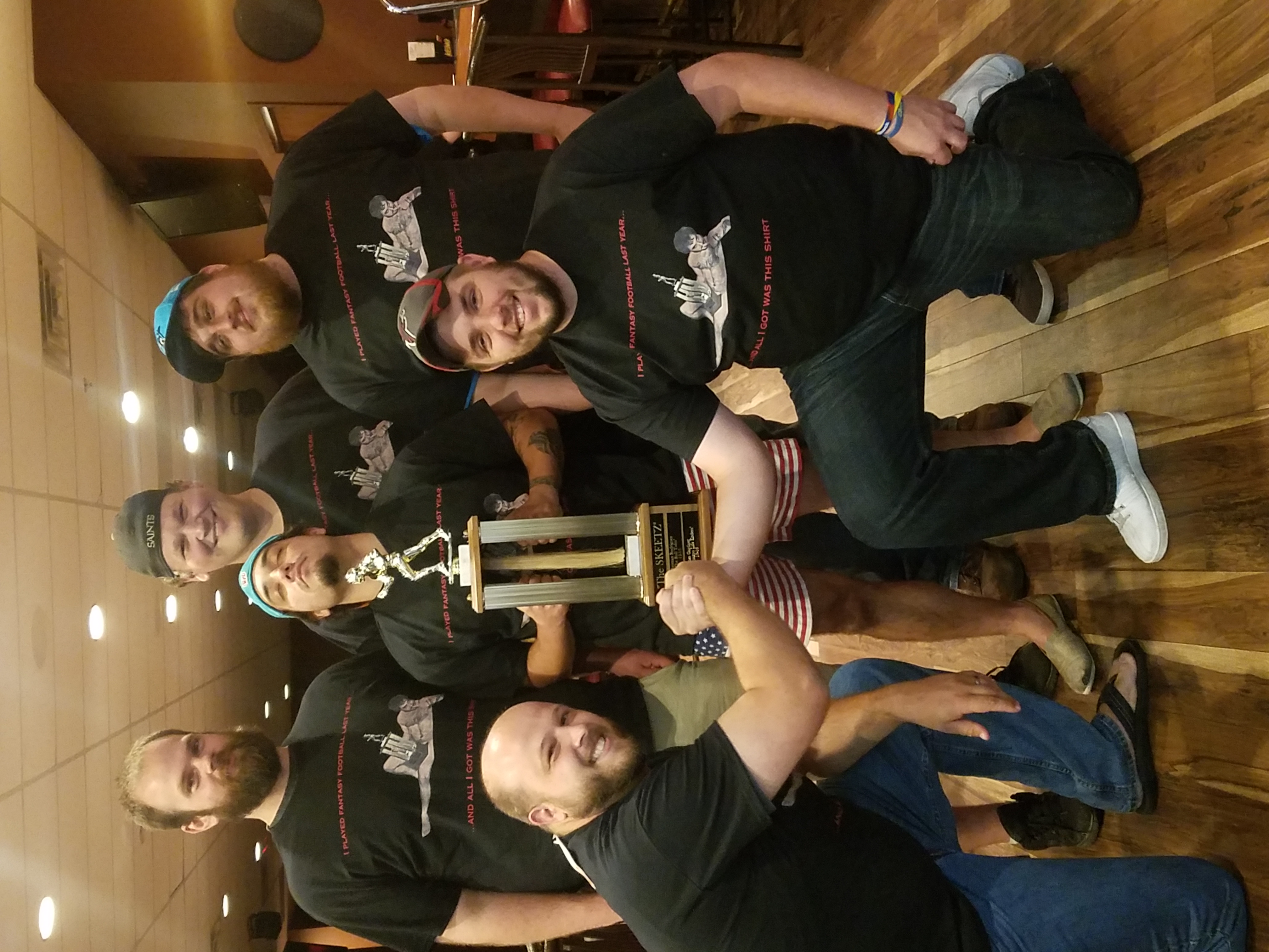 "This is the fantasy football league participating in its 7th annual draft. We're just a fun loving group of guys who enjoy picking on each other every chance we get. Thank you CustomInk for the great shirts and fantastic customer service."