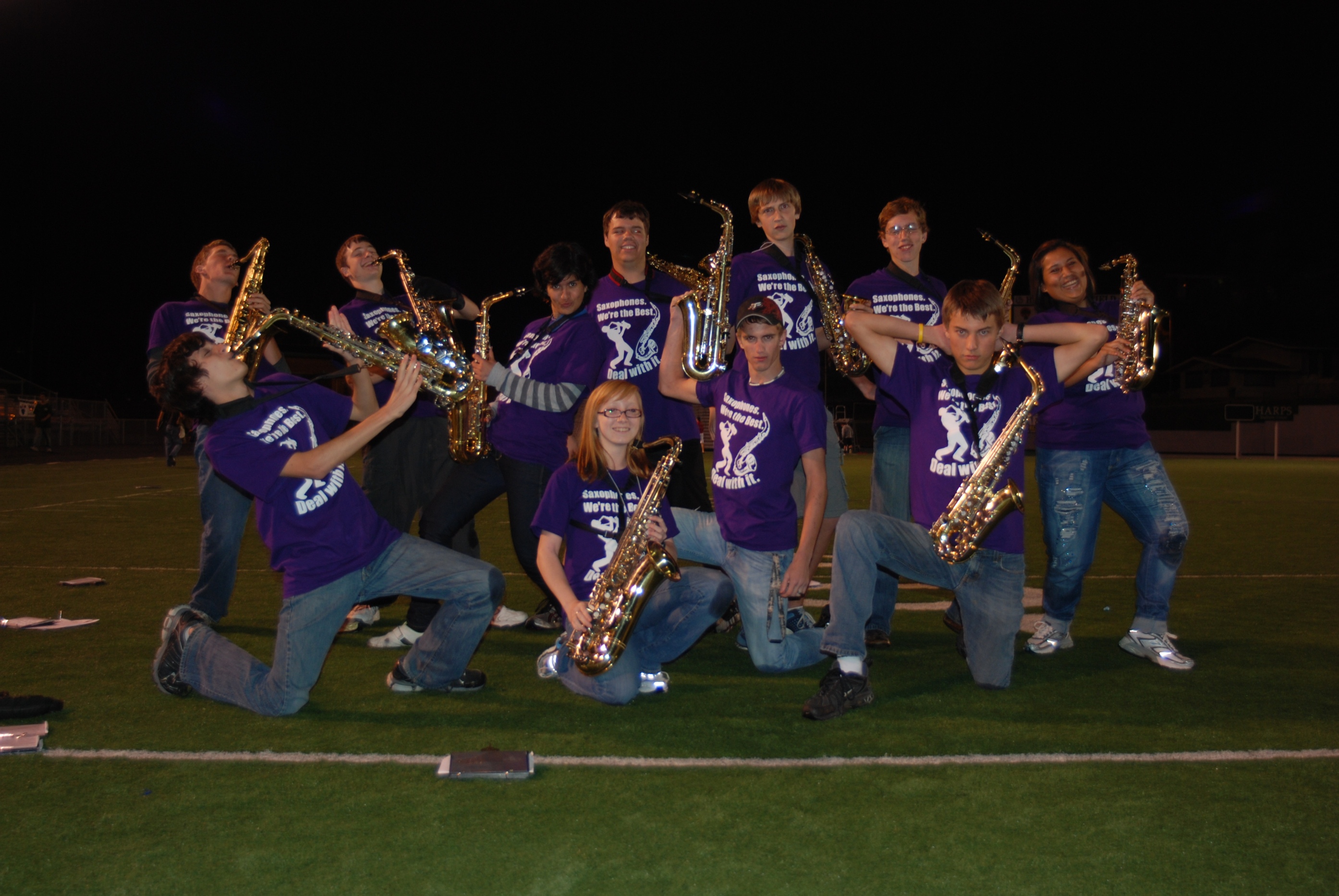 "We made these shirts to show our Saxophone section spirit. This was taken October 6, 2009 after band practice with those wearing their T-Shirts."
