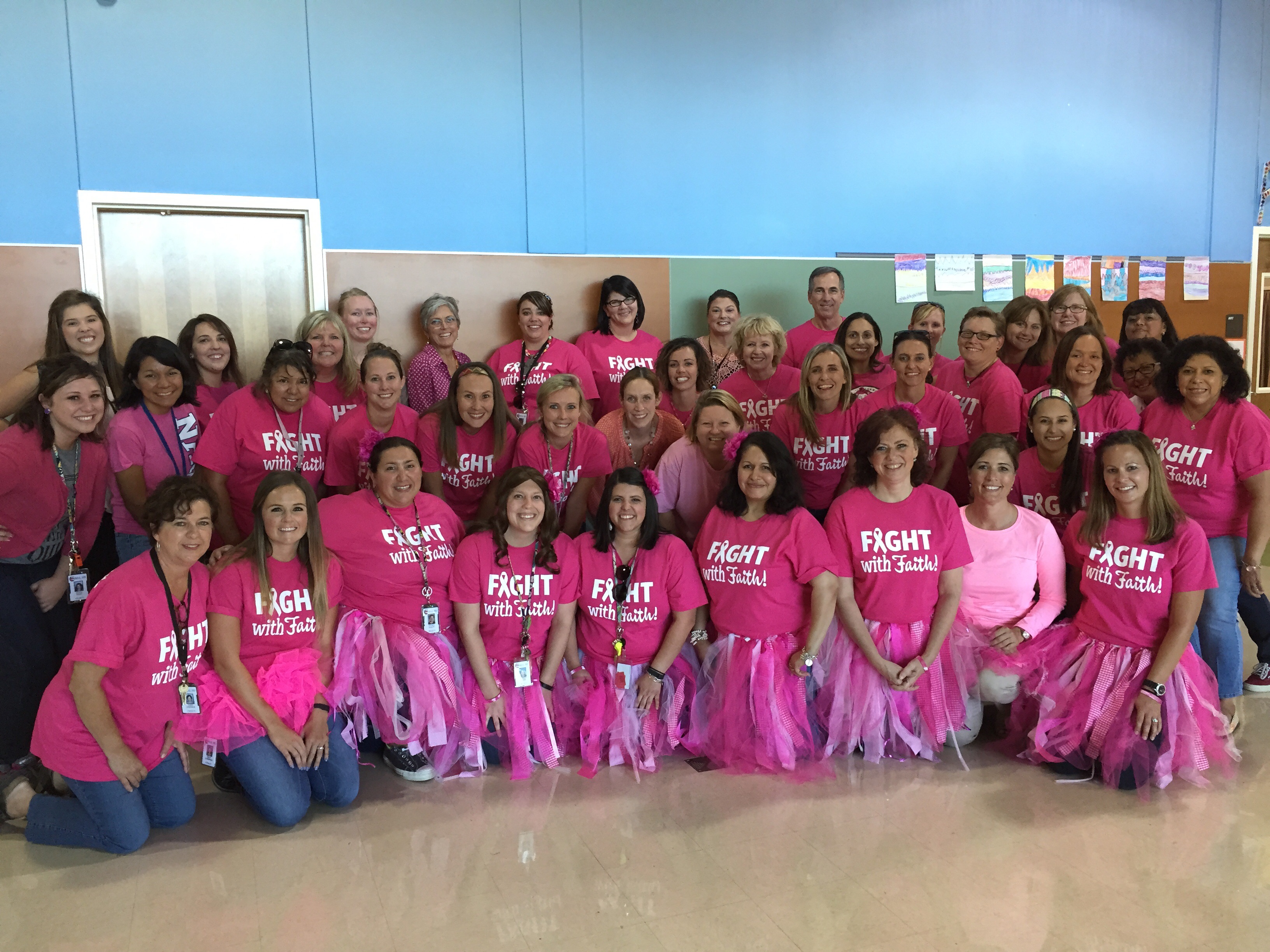 "Each year in Kinder we pick a color a week to help our students learn their colors and color words. For pink week my school decided to not only help reinforce our teaching the colors but also supporting me in the process.This photograph is of my amazing support system at work. These ladies have kept me uplifted in my fight with cancer and continue to support me each and every day.