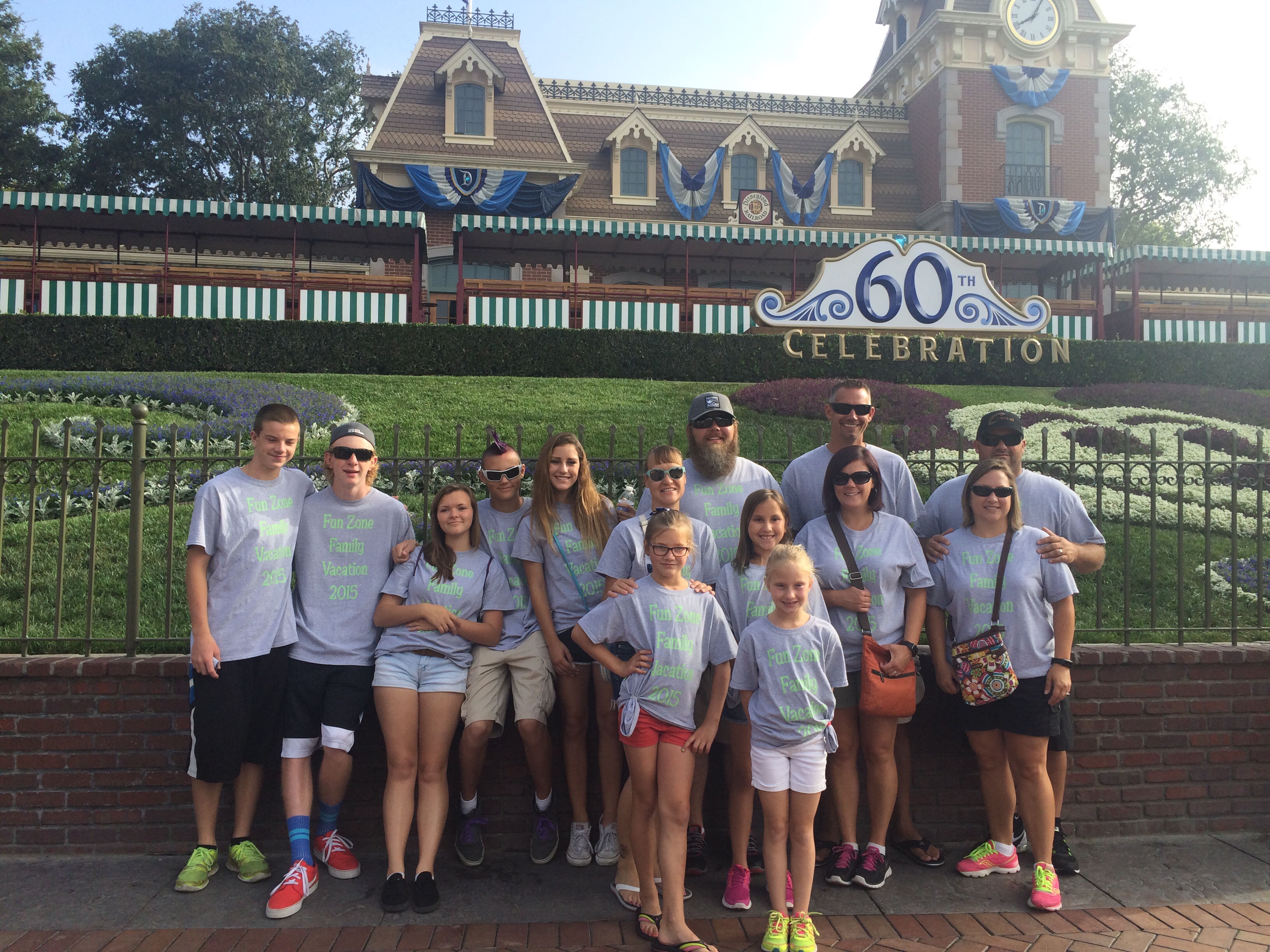"3 families decided to take the good times on the road! Why not take a family vacation to Disneyland? Better yet, why not tell everyone at Disneyland that the Fun Zone took their family vacation to Mickey's front yard!?! Our first official family vacation picture was taken at the entrance to Disneyland. We had a blast from open to close!!"