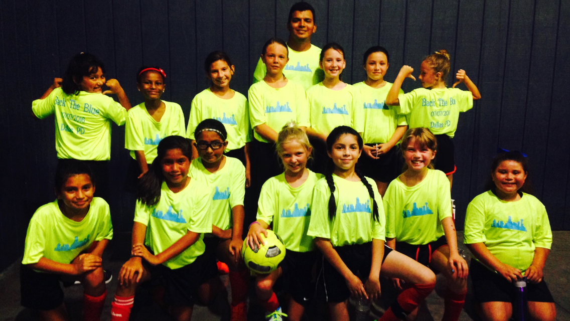 "This is an awesome group of young soccer ladies who loved the shirts and loved the cause to show support for the Dallas Police Department."