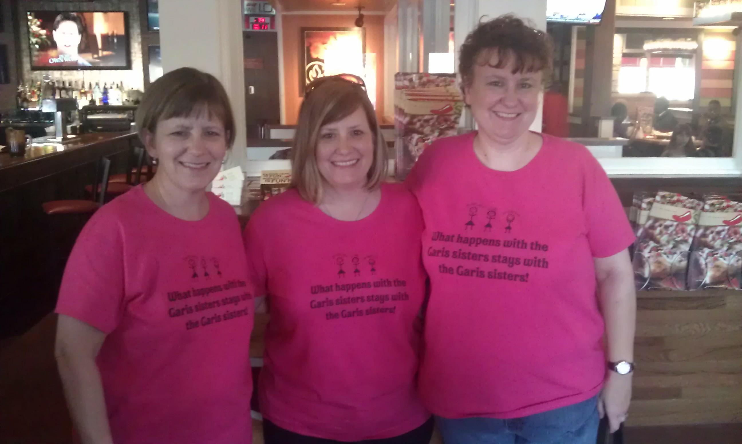 "We were out and about while I was visiting Shirley and Sharyn in Texas...got lots of compliments as we made our way from Oklahoma (casino time!) back to dinner here at Chili's. Love CustomInk---easy to create designs, love to see what they will look like before they are actually made (and they look exactly the same!), great customer service and t-shirts arrived quickly. "