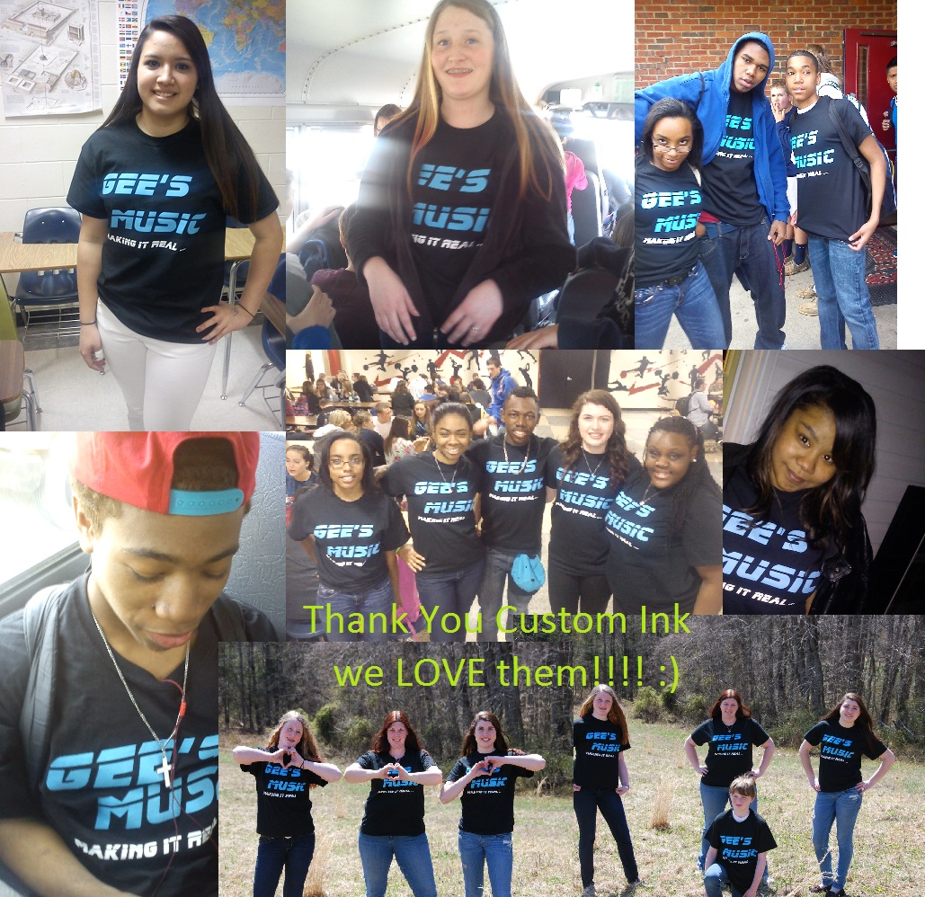 "Thanks to Custom Ink, I have many more followers for my music career. They look at the shirts and their mouths are DROPPED with amazement and interest and plead for a shirt right away! Thank you Custom Ink for allowing me to make a design that would make my day and other customers day who bought a Gee's Music shirt from you guy's! Custom Ink is the BEST and i WILL be back to buy more things by Custom Ink."