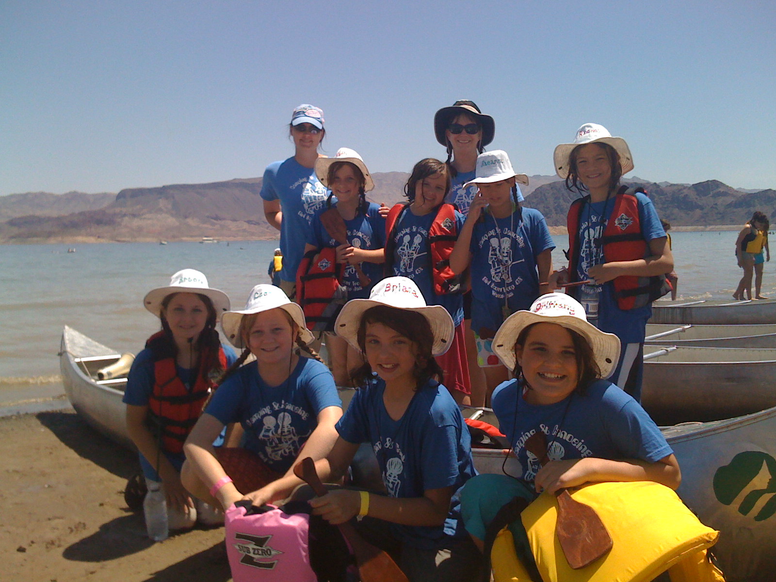 "Frontier Council Girl Scout Troop 438 attended Junior Water Jam (Jamboree) at Lake Mead. We were only 8 of about 100 Junior Girl Scouts who spent the weekend camping next to Lake Mead and spending the day playing water games and learning how to safely paddle around in canoes. We also spend part of the day with a National Park Ranger doing a service project on the lakeshore.