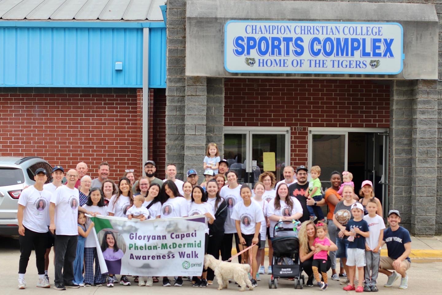 "This is the group that came to walk with Glo (Gloryann)! We were raising awareness for the Phelan-McDermid Syndrom which Gloryann has. We are standing outside the Champion Community Center in Hot Springs, AR, where the walk began and ended. Near the Center is a nice walking path along a creek. This was a one time event to celebrate Glo. Working with Custom Ink has been an awesome experience! The t-shirts looked great, they donated to our cause, and they gave us a voucher for a future order!"