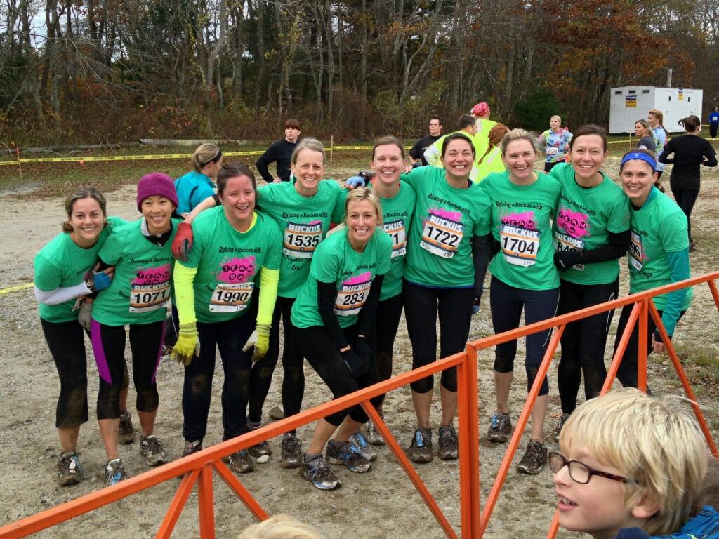 "Our team of neighborhood friends crushed our first Ruckus experience! Incredible teamwork propelled us through the course- over the walls, through the mud, across the nets, along the beams...and into the beer tent at the end. With many shout-outs to our shirts-"