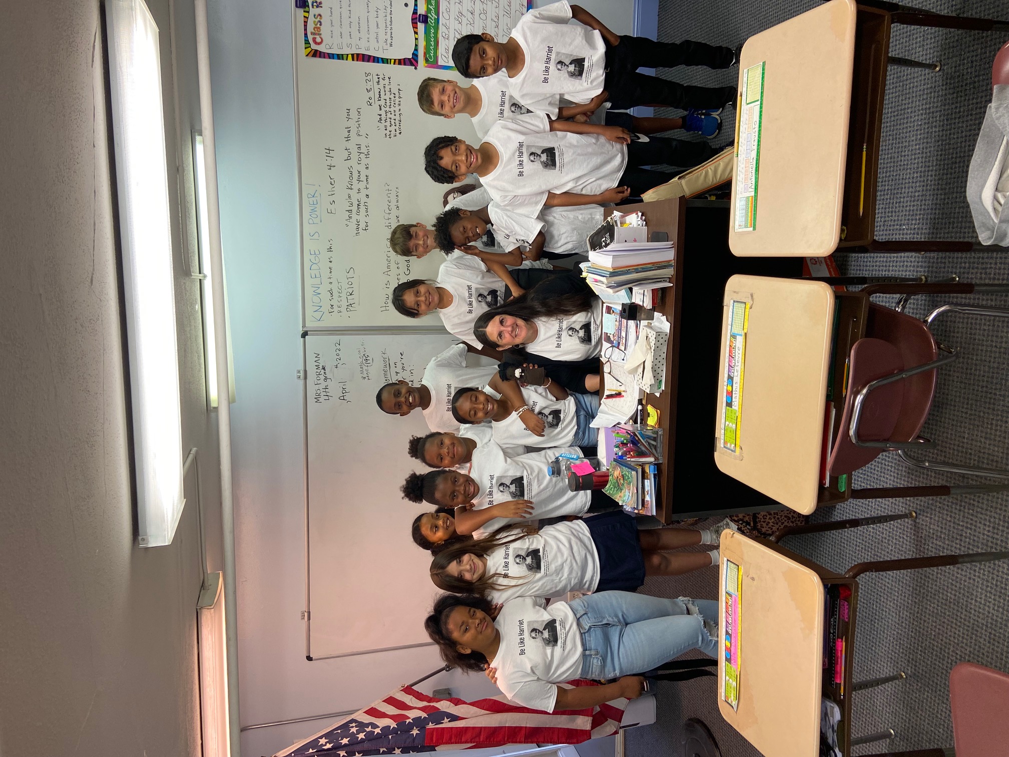 "I am Mrs. Forman and this is my 4th-grade class at The Lighthouse Church School in Santa Monica, California. Harriet Tubman has been my hero for 25 years and I have read her life story to every class I have ever taught. This special class actually did a Harriet play. Harriet's selfless life has been the theme and example of our year so I wanted them to have a special keepsake to remember her and to remember me for years to come. Thank you Customink for making my dream come true! Excellent product, great customer service! I will definitely be a returning customer! photo was taken April 28th, 2022 around 10 a.m."