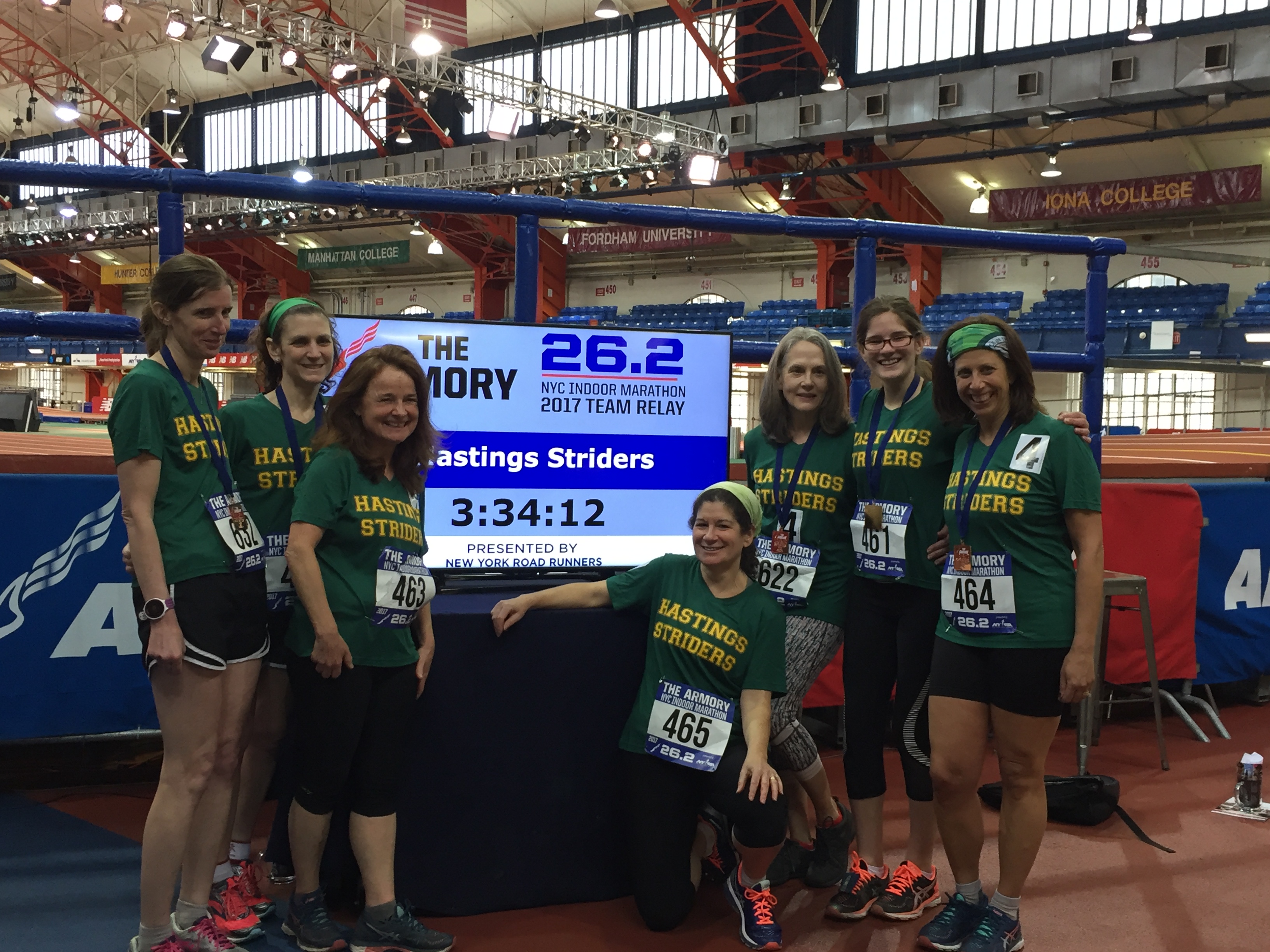 "I am submitting pictures of three separate teams of the Hastings Striders shirts at the Armory Indoor Relay Marathon on Sunday March 26th.