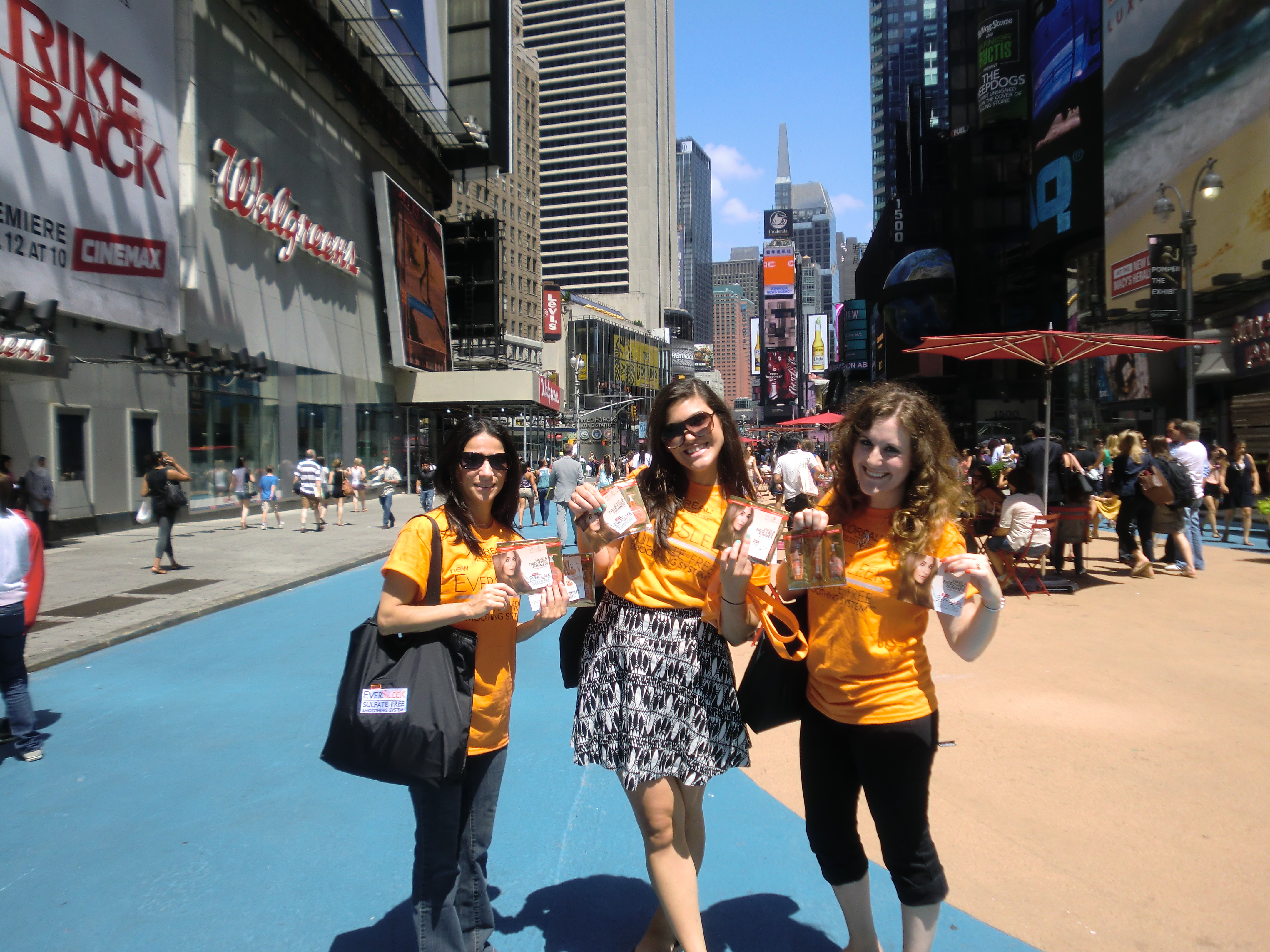"L'Oreal Paris Hair Care had a two-day EverSleek sampling event in NYC with the theme "Have a Frizz-Free Summer!" Around 3,000 samples were handed out and CustomInk t-shirts were well-received and worn with pride!"