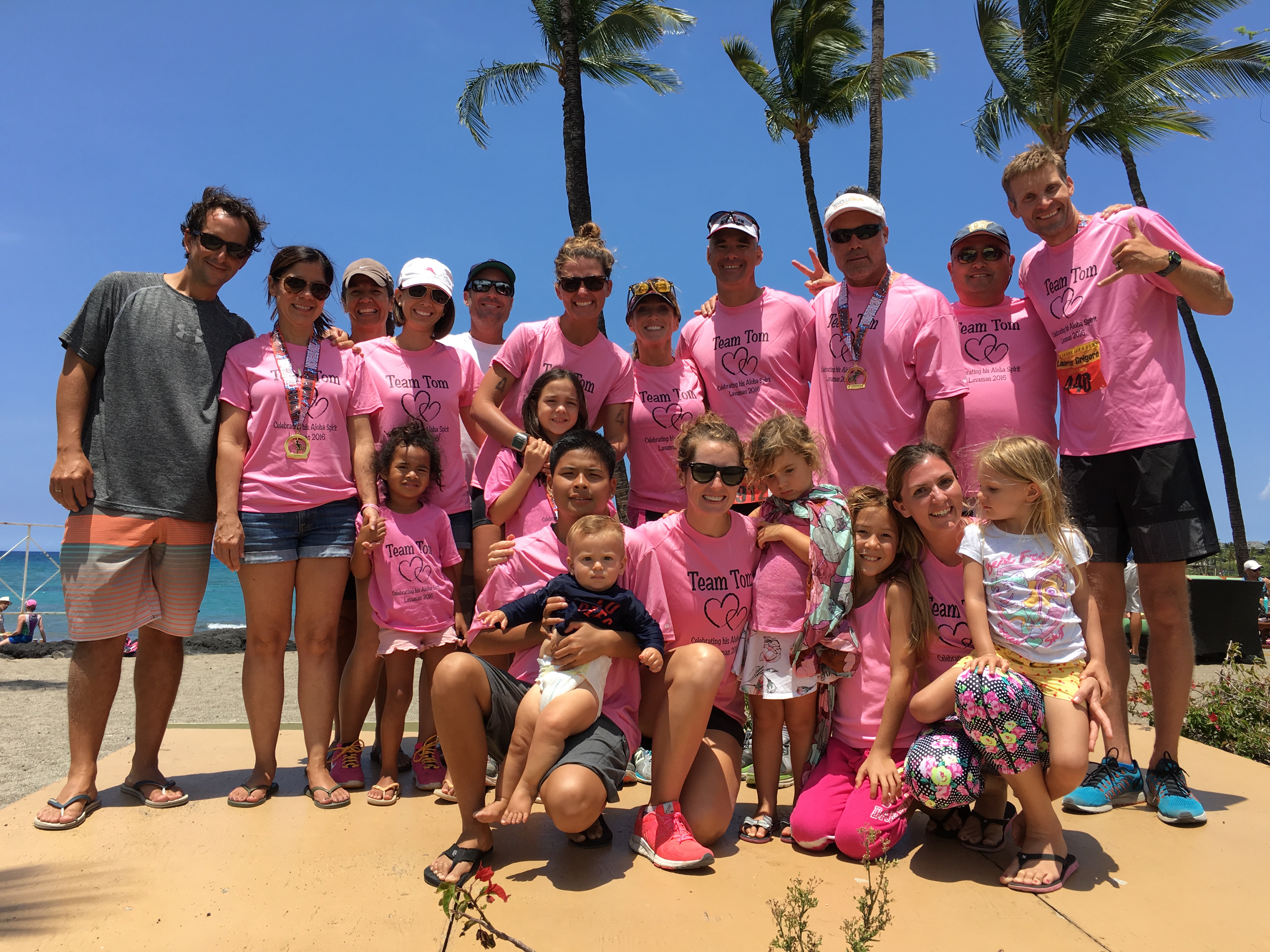"An amazing human being was suddenly taken from us just weeks before an event in Hawaii that a group of us were going to participate in with him. Tom touched so many people in extraordinary ways, and we wanted to honor that at the Lavaman Triathlon so he was still racing with us in spirit. 46 of us decided to be "Team Tom", experiencing roller coaster emotions while wearing our CustomInk shirts that day, covering the beach in a sea of pink--the color chosen due to a drink named after him--Tom's Pink Shirt. Thanks to the wonderful service provided by CustomInk we'll be ordering more in the years to come, making it an annual event. "