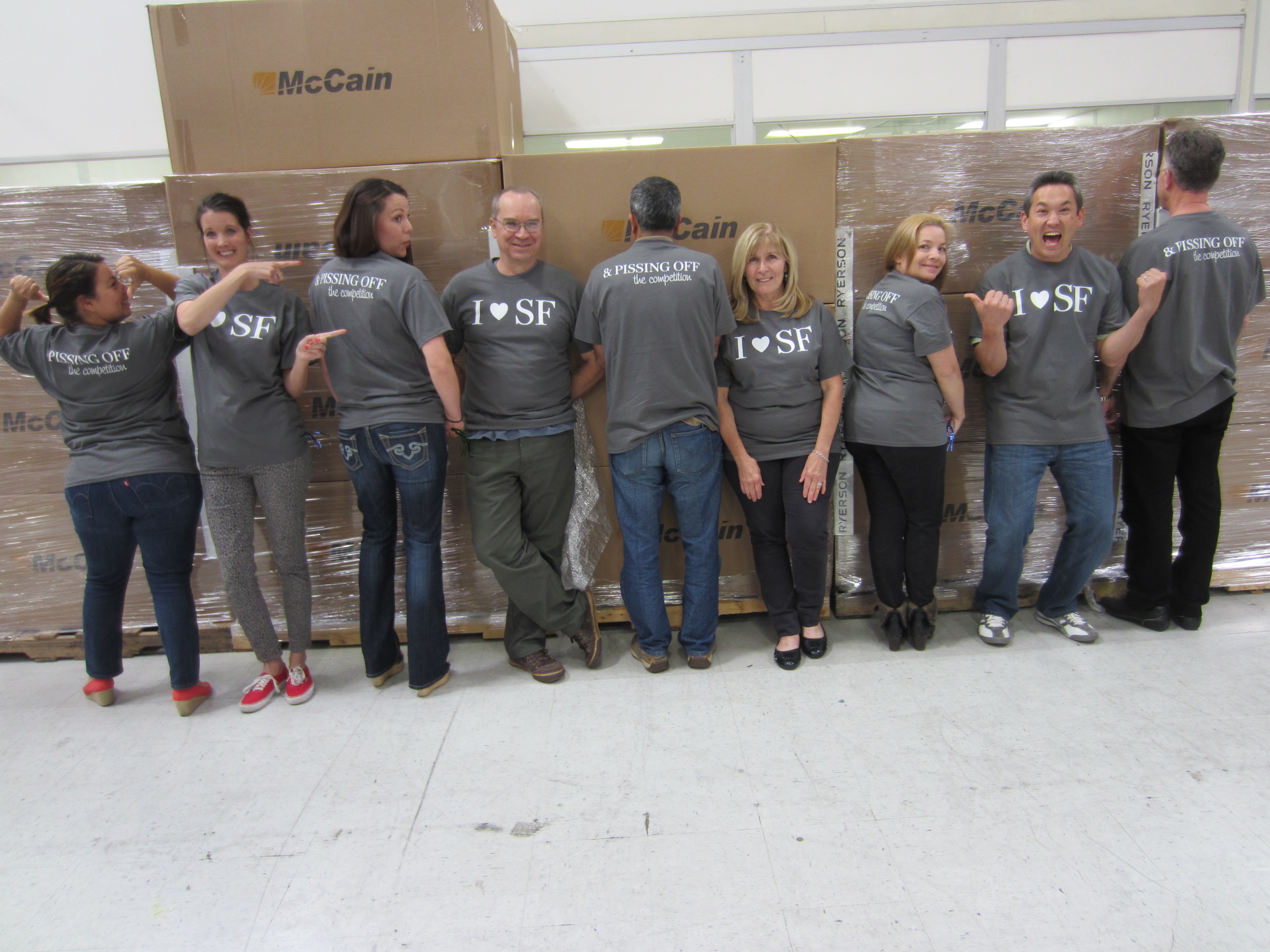 "We recently beat out a large competitor in a fierce bid for a large project in San Francisco. To celebrate the win, we surprised our engineering and sales teams with a triumphant performance through the hallways of "We Will Rock You" by Queen accompanied by our "I ? SF" shirts. The best part was that when we turned around the back of our shirts include one of our CEO's token phrases, and