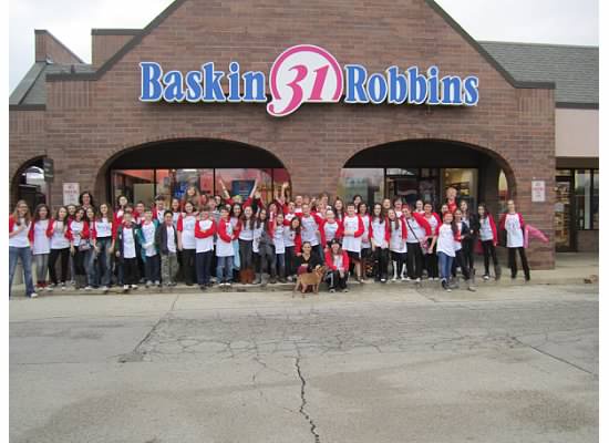 "We did a ice cream trip where we went to 31 different baskin robbins to eat ice cream at each. The front of the shirt has "I scream you scream" and the back has a check list for crossing off what we ate. "