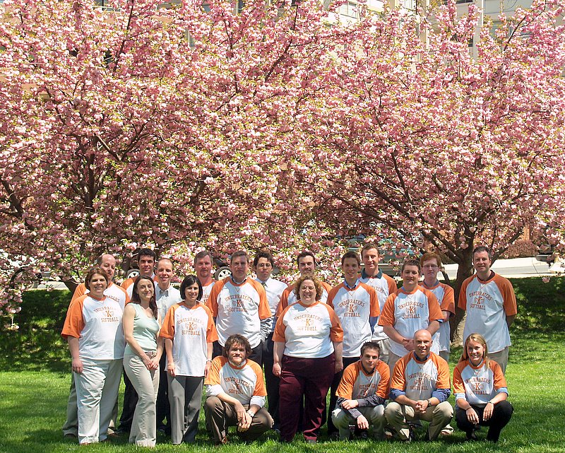 "2007 is our seventh year playing softball together and this year's jerseys are special. Our star pitcher passed away suddenly last fall and we chose the color and design to honor his memory.