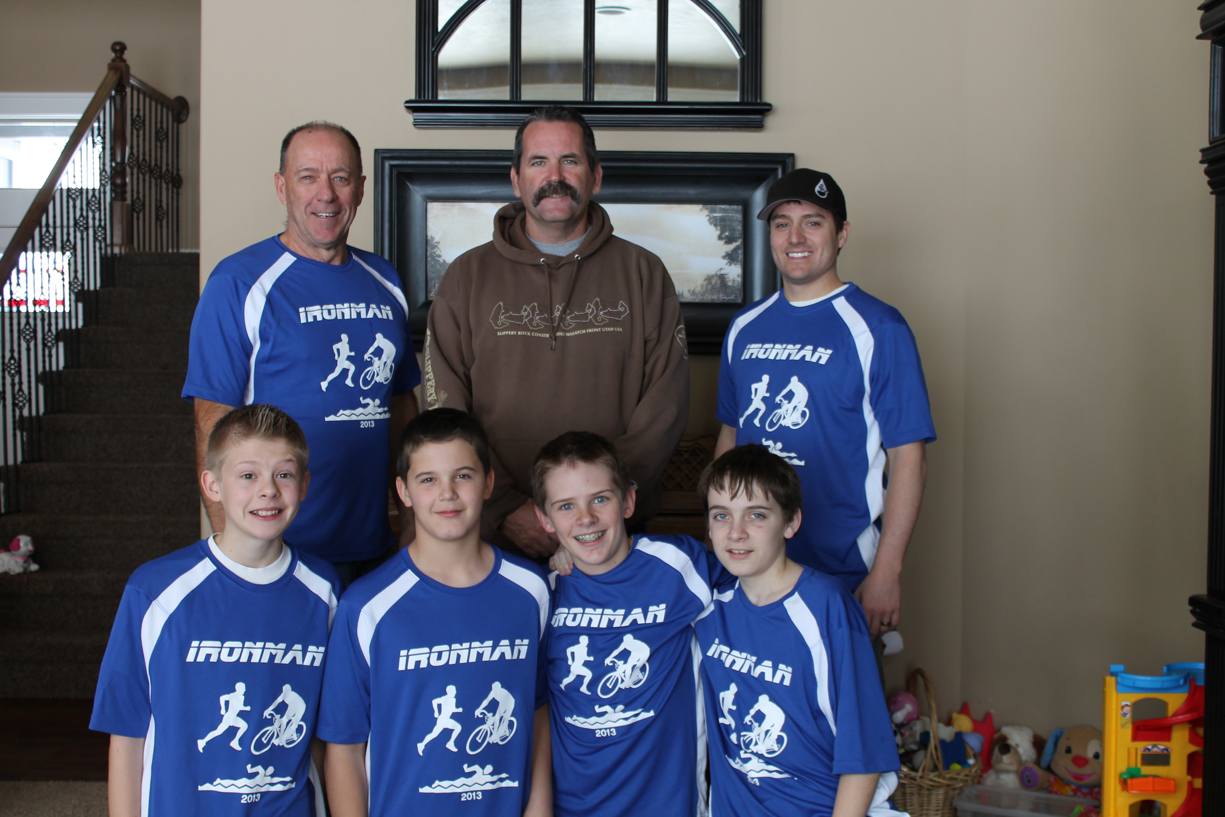 "Our young men decided to do something hard. They focused on the Iron man competition in Hawaii and with a little modifications came up with our Quorum Project. 2.4 miles swimming, 26.2 miles joggings and 112 miles cycling. As the day approached the young men began to show signs of doubt and fear. We brought out our new CustomInk shirts and everyone was committed and confident. The shirts really did unite us. This will be an annual event and new shirts for each year to solidify our goals."