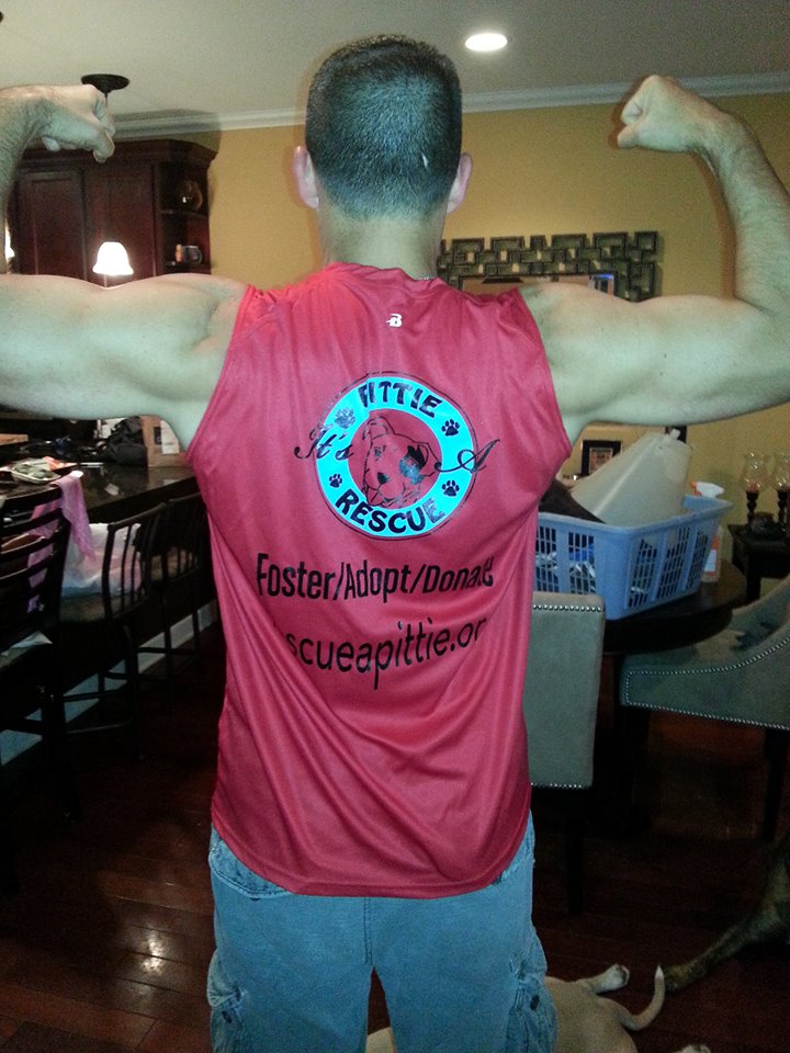 "CustomInk was great --- they had to redesign the shirt a bit due to some coloring issues and I was concerned that I may not like the final product but it looked great! Excellent job of following up with me as to the design and everything else, and the shipping was very fast. I got this shirt for the Chicago Triathlon. I am doing the triathlon to raise funds for It's A Pittie Rescue, a non-profit organization that rescues pit bull breeds, provides vet care and finds them great new homes. CustomInk even went a step further by making a donation to my fundraising effort! :) As of the date that I enter this photo into the contest, the triathlon is 4 weeks away and I have raised $1,600+"
