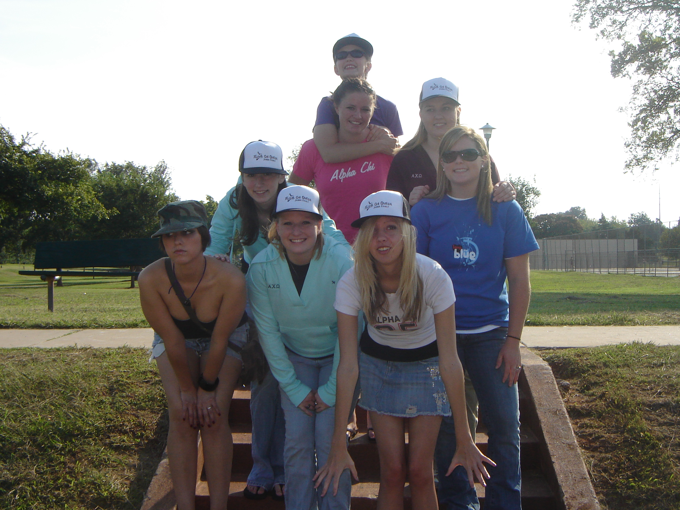 "It's Fall '07 Big/Little reveal for Alpha Chi Omega. This is my family, sporting our awesome hats from CustomInk!! The hats arrived a WEEK early, and were exactly what we wanted. Thanks!"