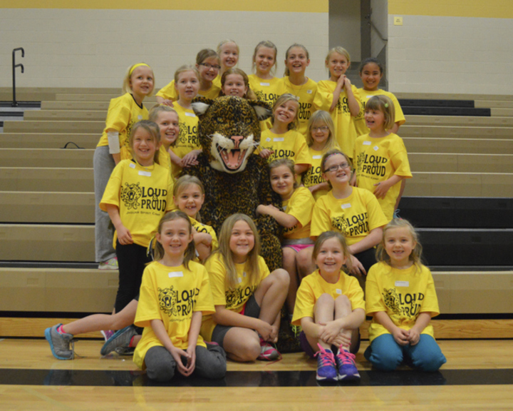 "These young, spirited kids were participants in the annual Northern Cass Spirit Camp. They are sharing their school spirit love with Jasper, our mascot. We are so happy with our bright yellow Loud & Proud shirts made by CustomInk. Thanks to the crew for doing such a great job!"