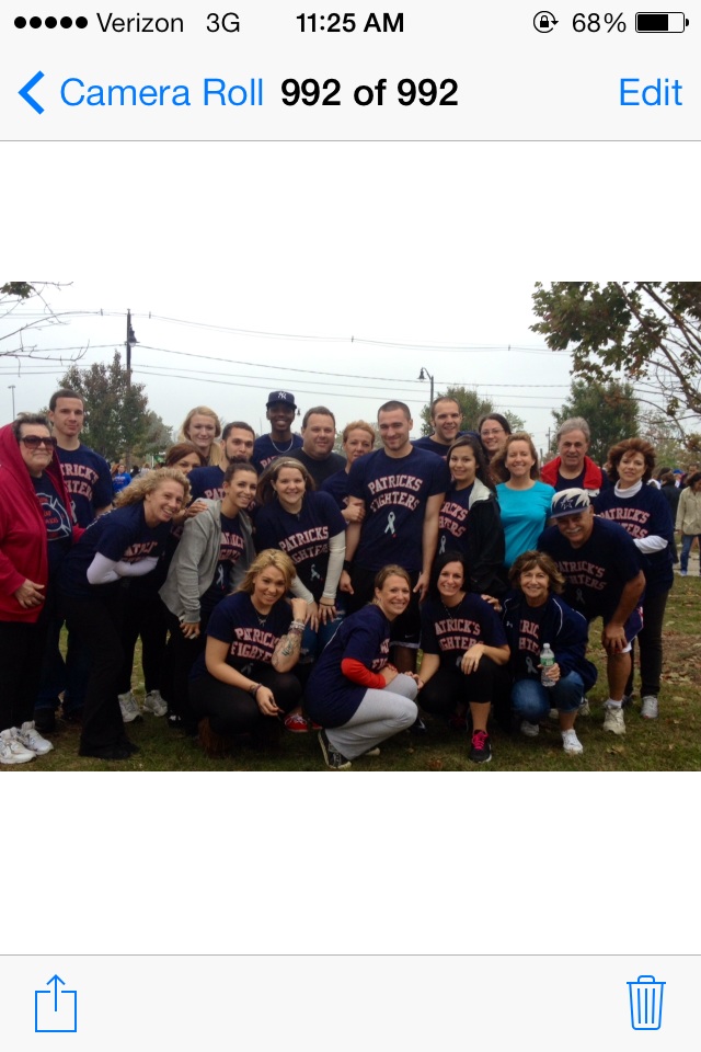 "This photo is of my team who supported me, go has diabetes, and walked with me for a cure. My team name was Patricks Fighters in which I created a shirt that uses the firefighter cross logo on the back because I want to follow my fathers footsteps and become a firefighter. All 38 shirts were worn and people even asked where I got the shirts from! Custom ink is great!!!"