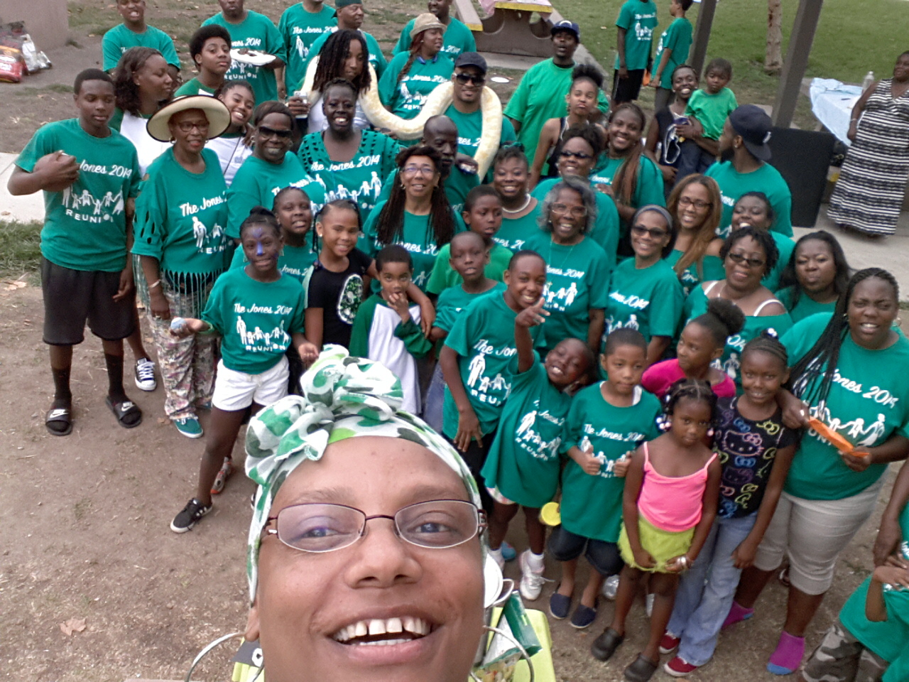 "It was our family reunion. It was at Kenneth Hahn Park in Los Angeles, CA. August 3rd,2014. We were just finished doing a Flash Mob to the song, Happy. Everybody enjoyed their shirts, from a 5 month old baby to a 80 yrs old women. Thank you so much for help making our day memorable. "