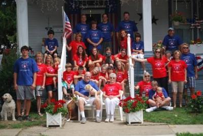 "This is our 40th Annual 4th of July Family gathering. Pictured are the children, grandchildren, one great grandchild of George and Sara Gundling (pictured center). All but two grandchildren out of 19 were present!"