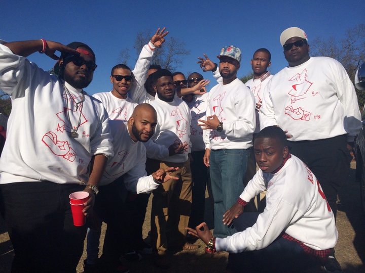 "This picture shows members of Kappa Alpha Psi. A fraternity based on achievement. These members at homecoming showing off the customink sweatshirts and enjoying the festivities. "