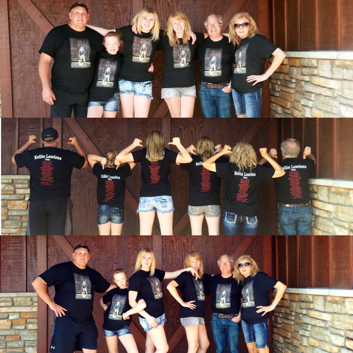 "Kellie Lawless (the 3rd person from the left) is a country music singer from Cannon Falls MN. We wanted to surprise her by ordering shirts that support her singing career and celebrate her winning in every contest she participated in this summer. Way to go Kellie! #teamkellie"