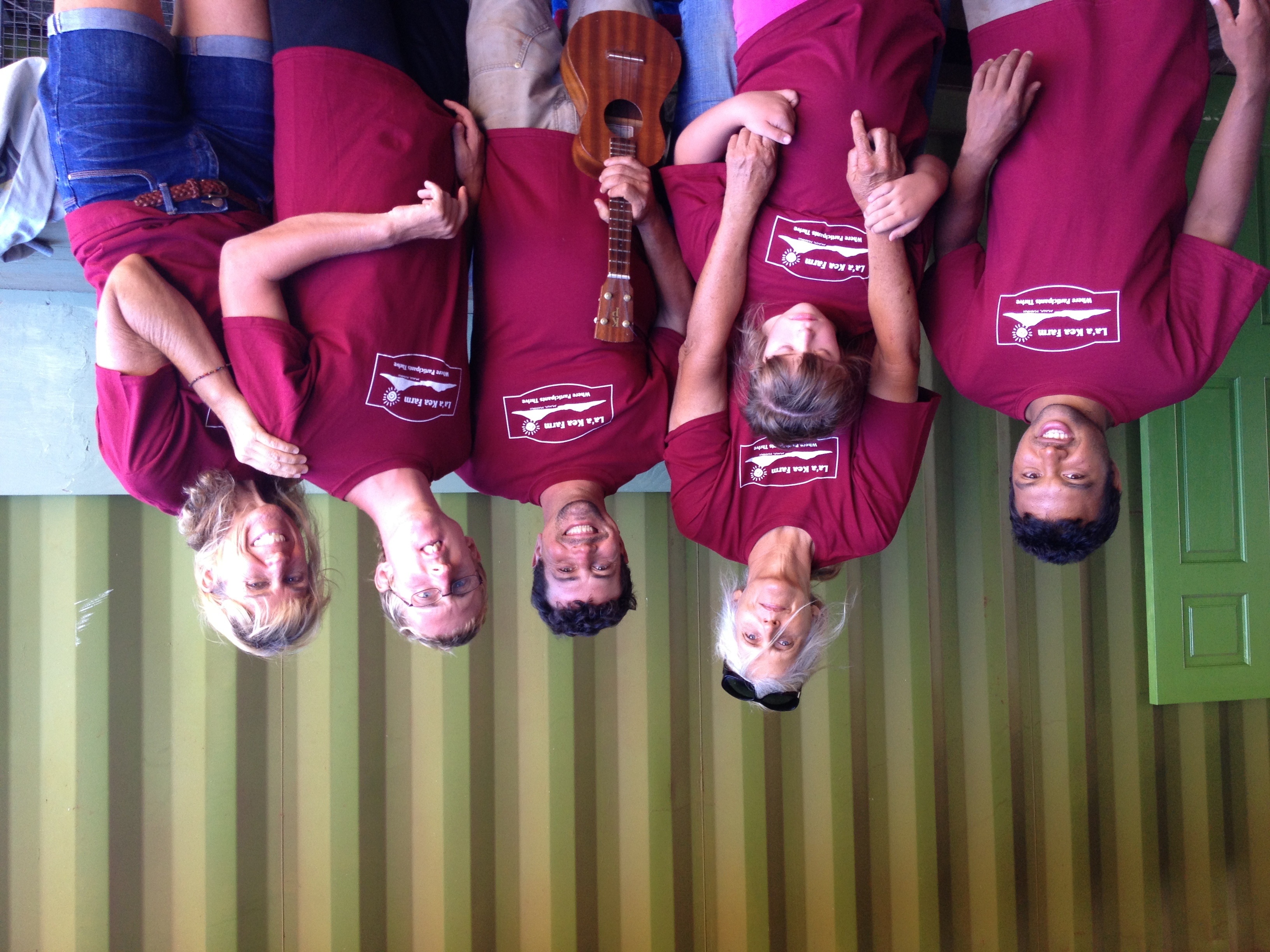 "La'a Kea is an organic farm on Maui that provides meaningful and productive work opportunities for youth and adults with autism and intellectual disabilities in an inclusive and fun atmosphere. One of our crew, Jennifer, said she wanted "uniforms" and I supposed the feeling of belonging to something special. We designed the shirt. Paul, another crew member asked for the color to be the same as the color from his former Maui high school so he picked out the maroon color."