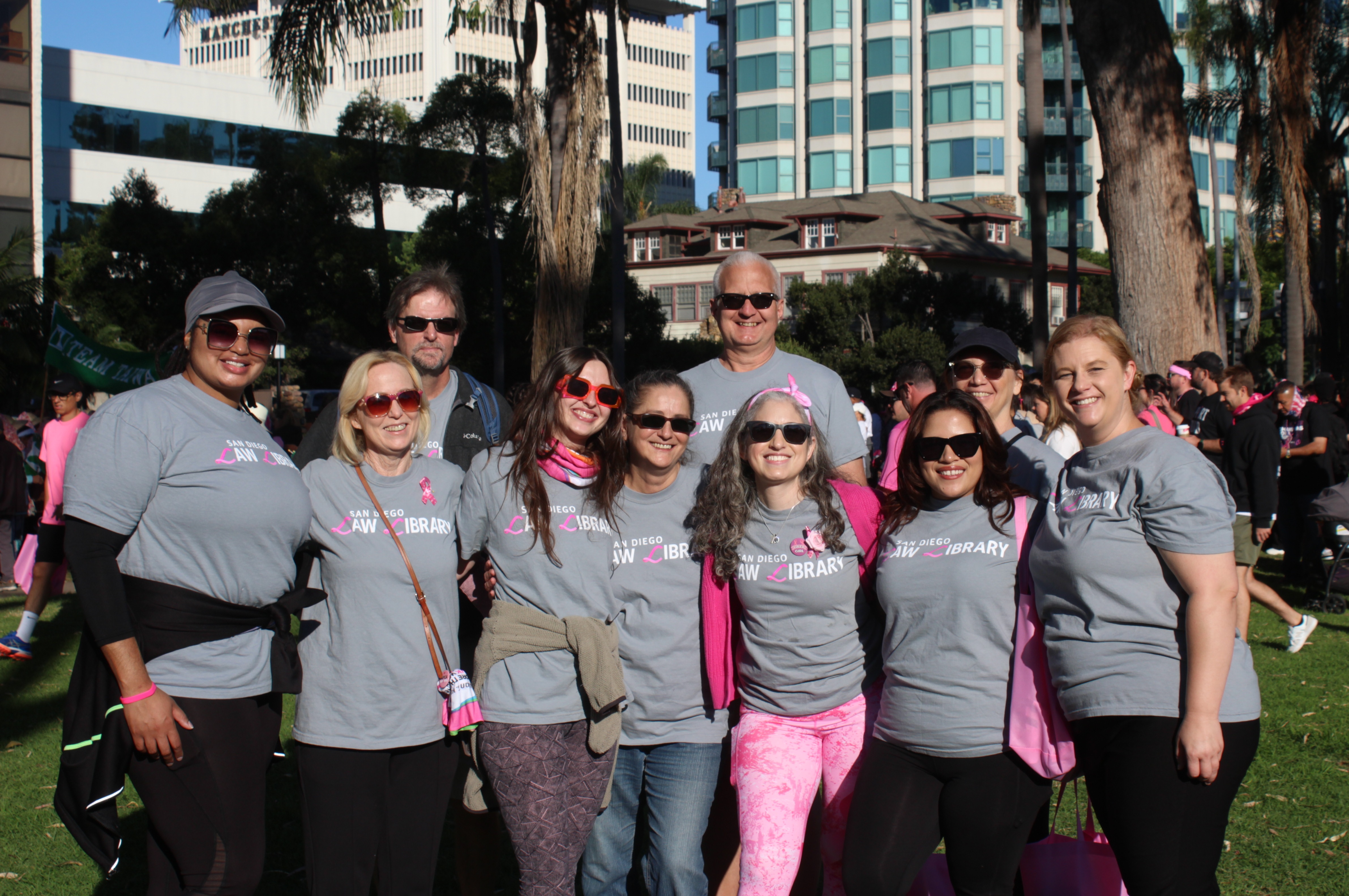 "We're a public law library in San Diego. One of our law librarian's designed a shirt that incorporated pink ribbons and the Law Library's name. Staff volunteered to participate in this year's More than Pink walk as a team and to acknowledge and support colleagues, family, and friends who had lived with breast cancer. We're frequent Custom Ink customers and were glad to have their help getting the design printed—and just the right shades of pink—and the shirts ready in time for the event."