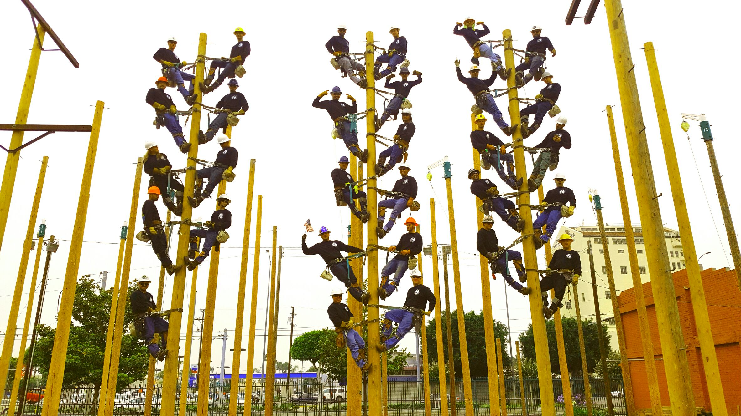 "This is the electrical lineman class of Spring 2016 at Los Angeles Trade Tech center. The picture was taken on then last day of class which is when we conveniently received the shirts! All of the names on the back of the shirt are all the students you see in the photo. We are very proud of ourselves for all the hard work we put into this semester and learning this skill, it is one that not everyone can do. My experience with CustomInk went very well. They understood exactly what I wanted and were able to create these amazing shirts!"