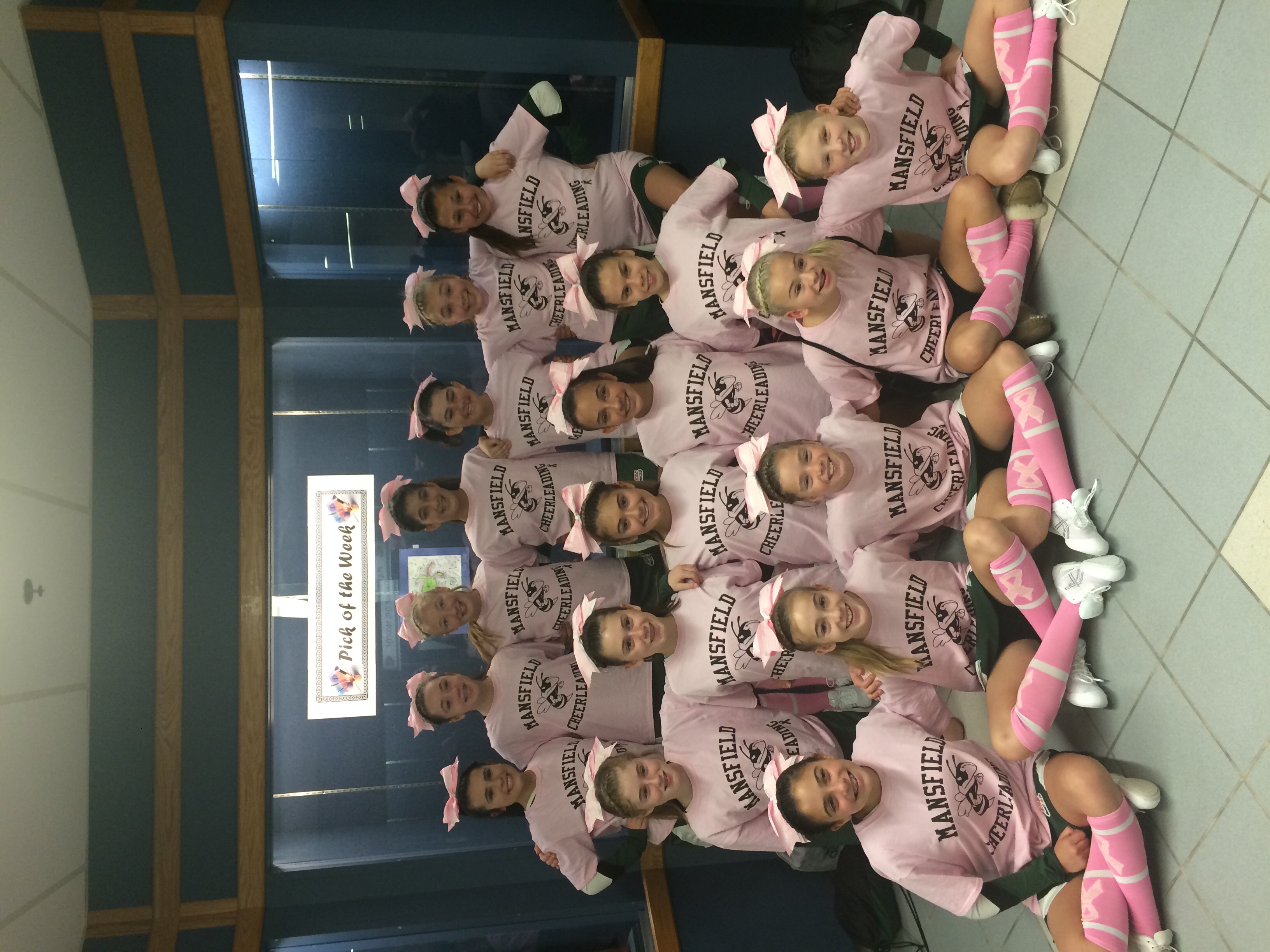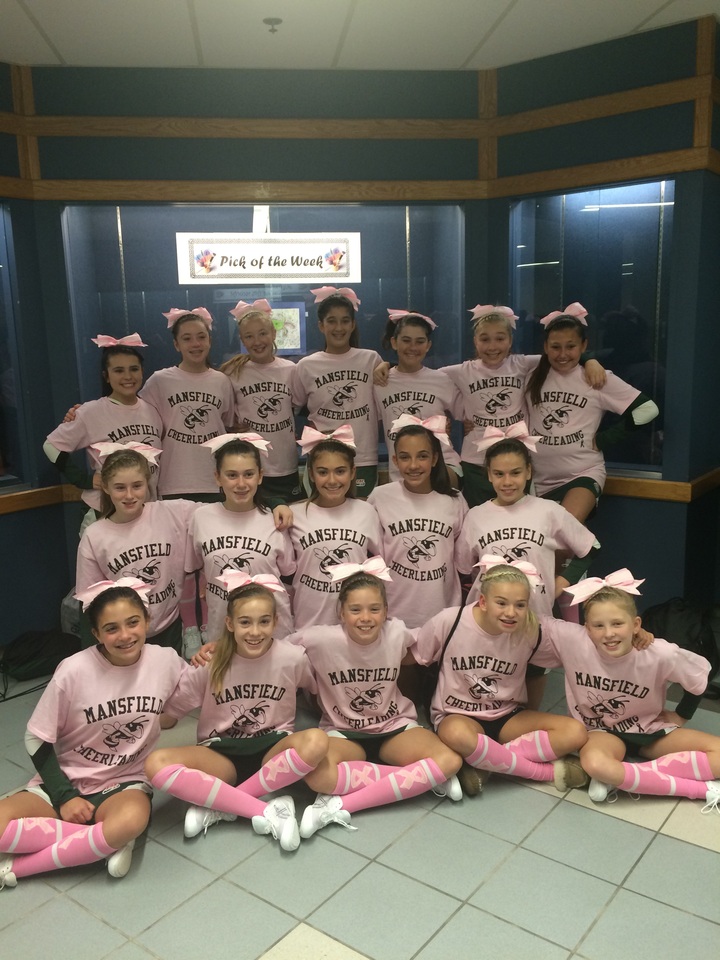 "Mansfield Pop Warner A Team placed second at the Cheer for a Cure Competition in Taunton, MA on Saturday, October 11th, 2014. Their pink T-shirts showed support for breast cancer and the girls loved them! "