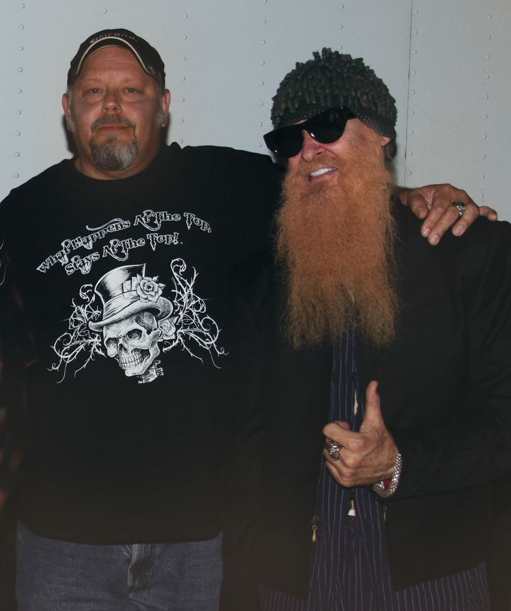 "I designed my own T-Shirt for a ZZ-Top concert and got to meet the band. This is me and Billy Gibbons. The shirt reads "What Happens At The Top, Stays At The Top""