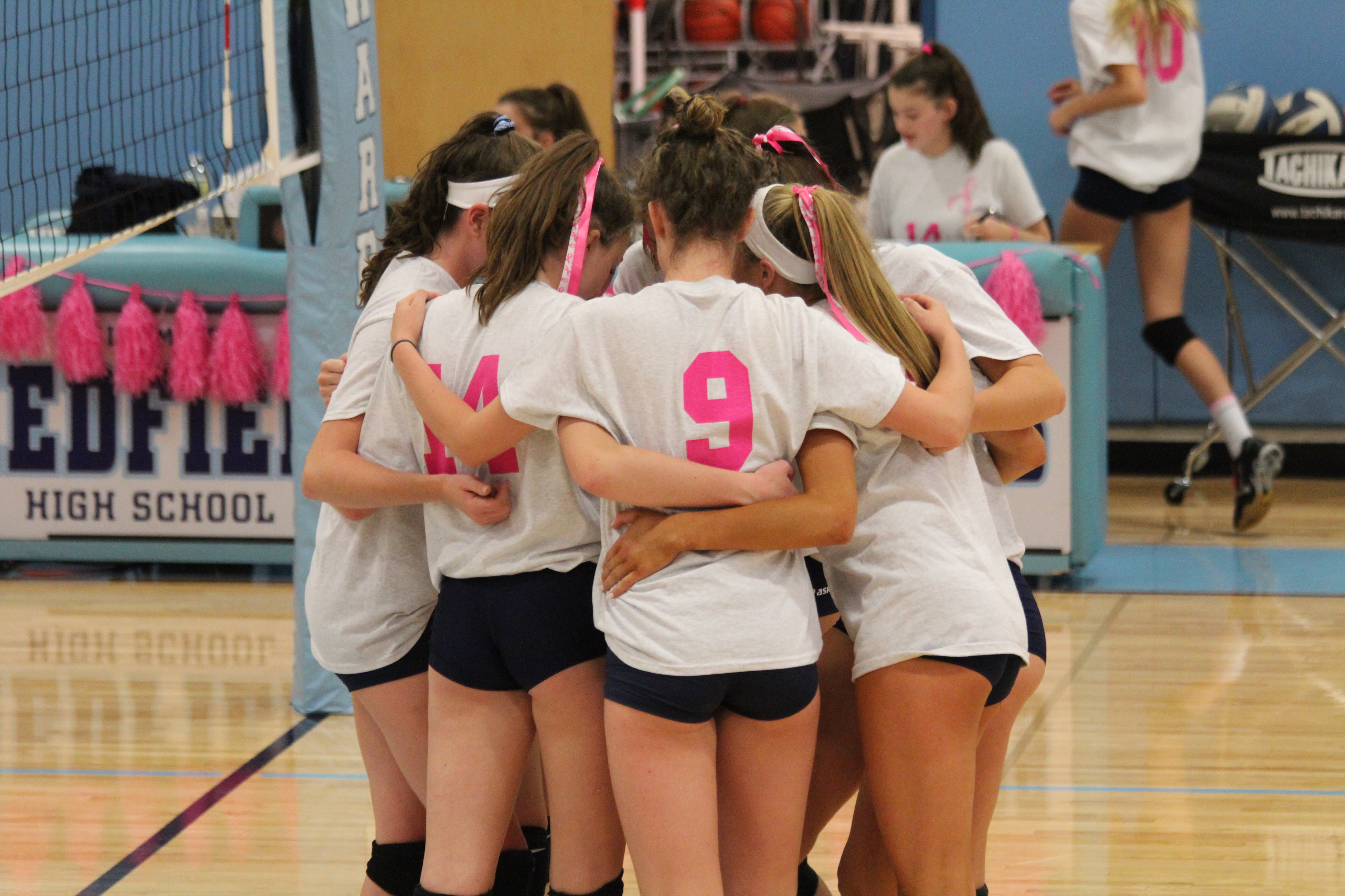"For our 2017 volleyball season, we were 3 first time “Captains Moms”. We all worked full-time and we all love our MedVol (Medfield Volleyball) community. We wanted to the best job but we were also flying by the seat of our pants! Unsure of who to use for our Breast Cancer Awareness night t-shirts, we ordered through custom ink. They could not have made it easier - they were beyond fantastic. The t-shirts looked great and we so appreciate the donation to our local YMCA’s LIVESTRONG program, which has helped one of our MedVol families. The girls on this team love each other so much - across all grades and playing time - they cheered each other on and supported each other. That love and support shows in the genuine love coming off of this MedVol Love picture."