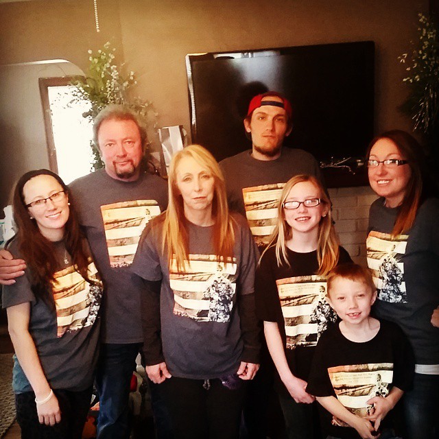 "Our friend Joey W. Riley died in Afghanistan, so we created a memorial shirt. Many families bought shirts and gave them to their family on Christmas. This family grew up with Joey and the young man was his best friend, who went MIA when he found out about Joey's death. He arrived home a few days before Christmas and was so blessed to have this memorial shirt. He said he was going to wear it everyday! I love CustomInk, they do great work! Thank you for helping me create a great shirt to honor our friend Joey W. Riley"