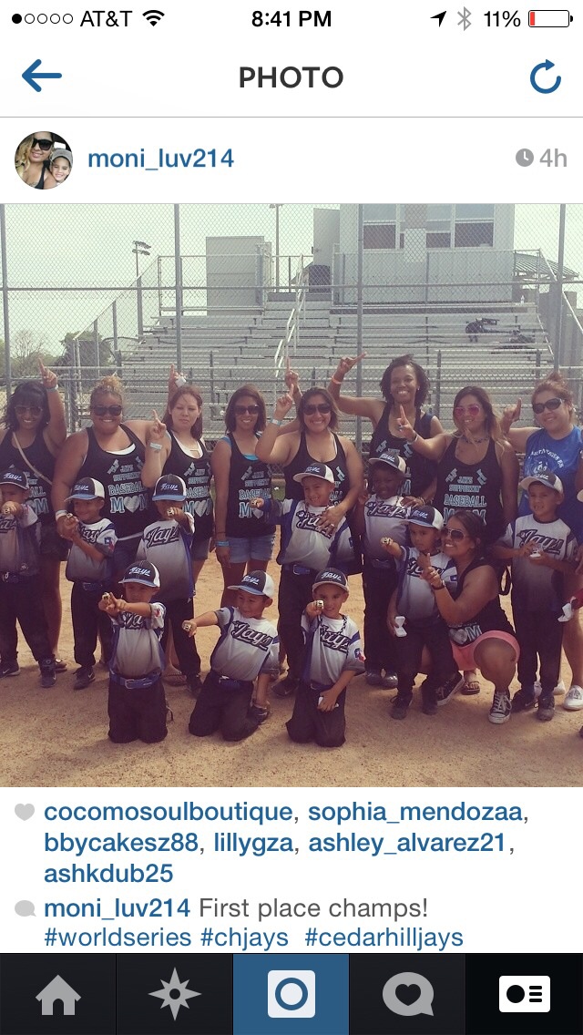 "This was at the cedar hill World Series where our boys and girl took first place! So many compliments on our shirts took pride saying we designed it!!!"