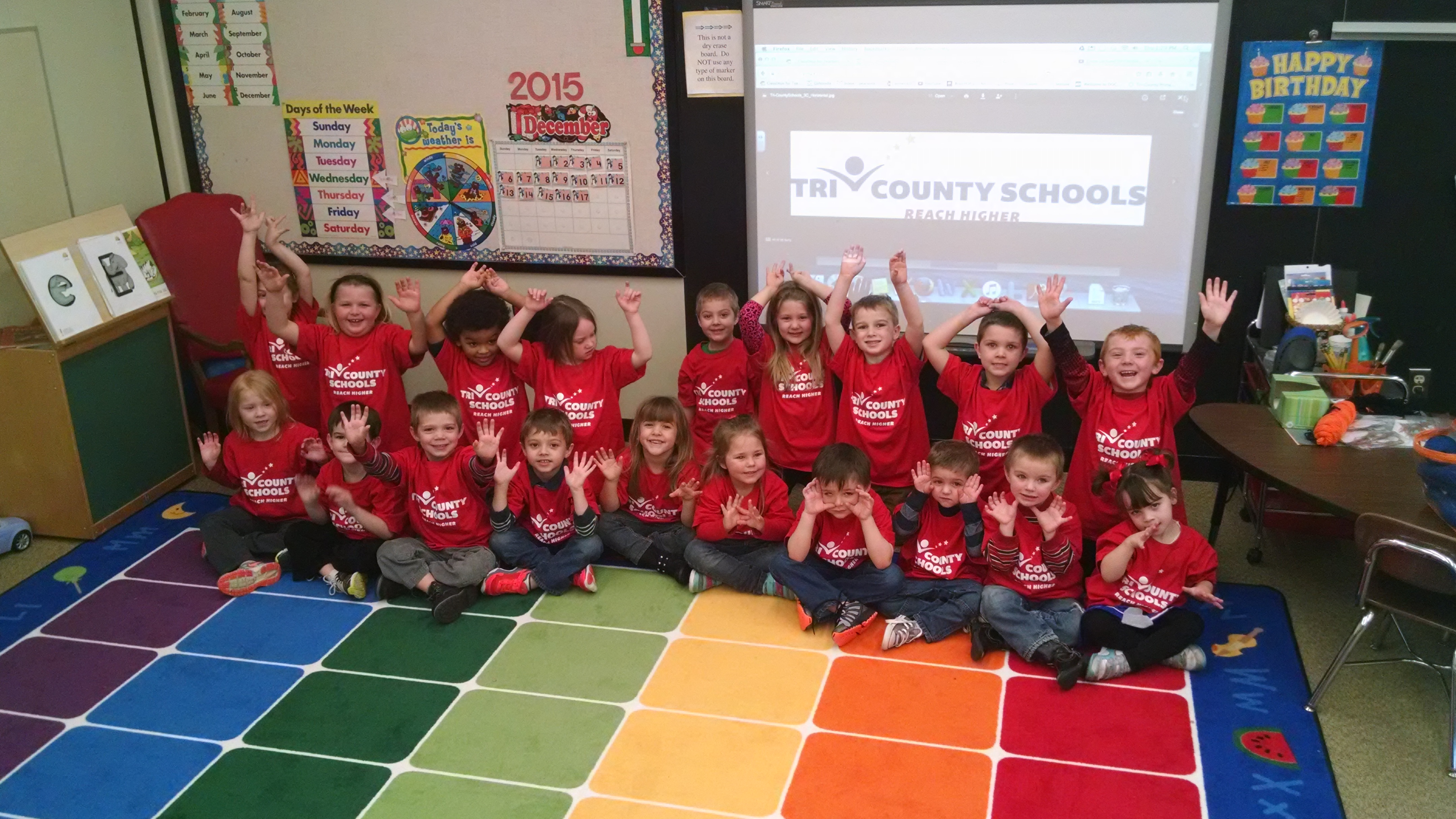 "Our PTO purchased t-shirts for all of our students so that they all have a chance to show some school pride. These shirts will be worn at any time, but especially for school spirit days and field trips so that we can display our Tri-County pride! This is one of our developmental kindergarten (4-5 yr olds) classes showing off their new shirts! We got them just in time to give to the kids before they left for Christmas break - a great gift for them. I loved my experience with Custom Ink - top notch service and friendliness. To be honest, I was a bit hesitant at first to look into an internet company versus a local company where I could see and talk to the people that would be doing my order. But you totally changed my perception with my first phone call - your customer service reps beat the service of most any other business!"