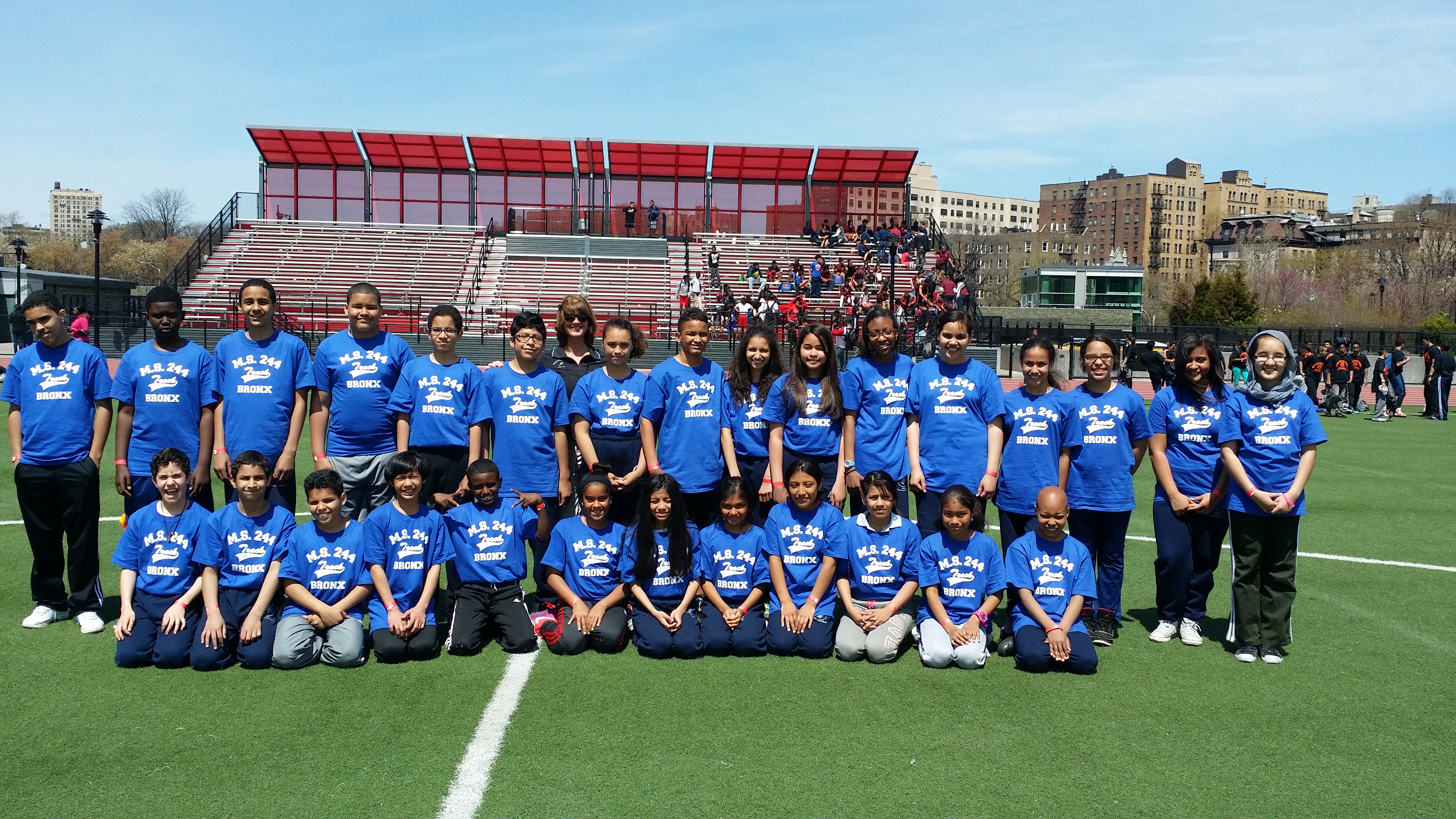 "Our school was at a track meet on Monday May 5, 2014 near yankee stadium in the bronx ALL of our students wore their shirts proudly and represented our school. We took first place in the 200meter and 400 meter, also the long jump. "