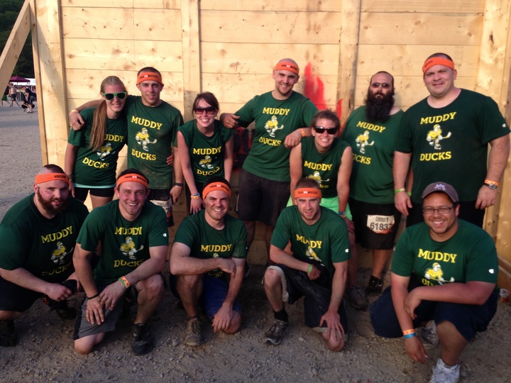 Friends and Family of all fitness levels came together in Laconia, NH with one goal in mind; kick the snot out of this event and have a hell of a time doing it. The 90+ degree and very humid conditions were no match for our champion, moisture-wicking powers. We tore through the course in waves taking from 3 to 8 hours to finish in groups. At the end of the day, when the mud had dried and the dust had settled, there we were... 12 ducks just having fun, celebrating the day, and rocking the hell out of our new favorite shirts.