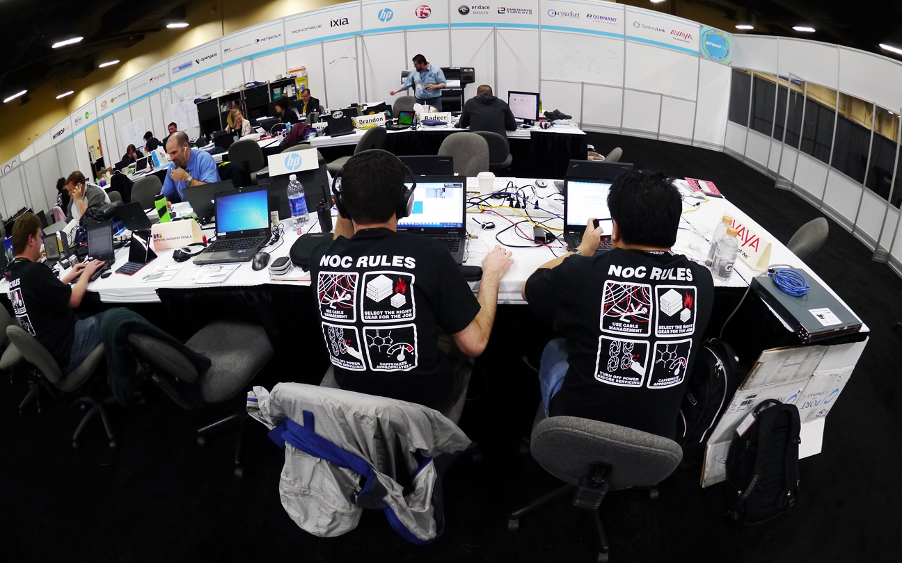 "Our company participates regularly in one of the world's largest technology tradeshows - Interop. Because we help sponsor the Network Operating Center (NOC) we are able to supply t-shirts for all participating network engineers to wear. Several companies supply shirts as well, but ours are always very popular :). This year's version features 4 humorous "warning signs" about possible NOC pitfalls.