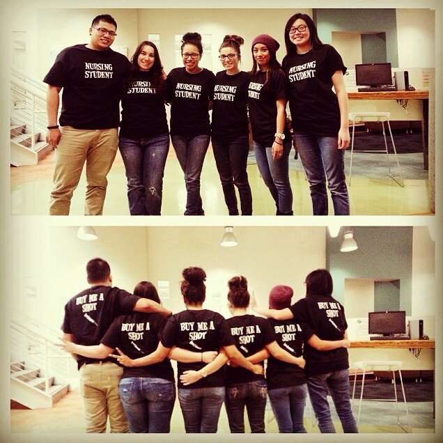 "We made shirts as motivation for our difficult yet accomplished tasks that we face in nursing school. We go out for some drinks to celebrate and with our cool shirts from custom ink, we even get free drinks!!! Thanks custom ink!!"