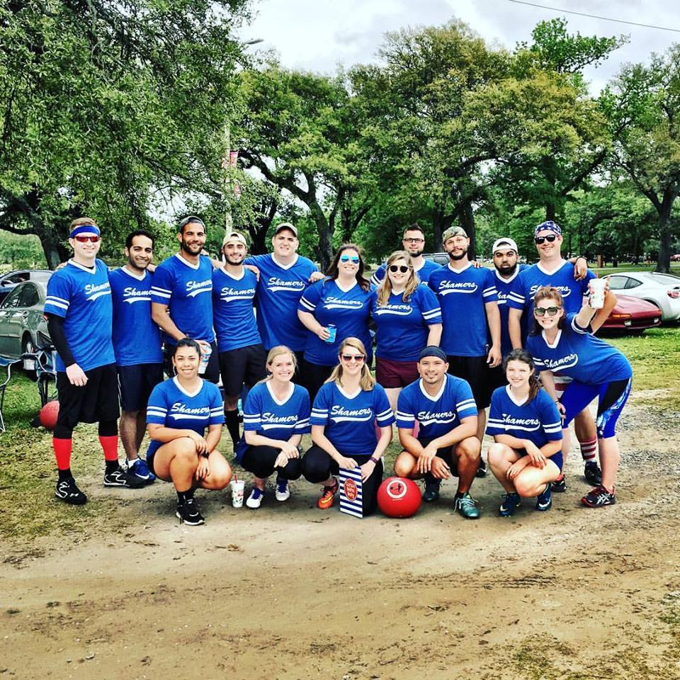 "We have been a kickball team playing in a local league in New Orleans, LA for 2 years. We thought it was about time for our team to have our own branded shirts. This is the first game of our spring season, and we were thrilled to show off our amazing new jerseys! Working with CustomInk was a breeze! We can't wait to order more for more seasons to come! Thanks CustomInk!"