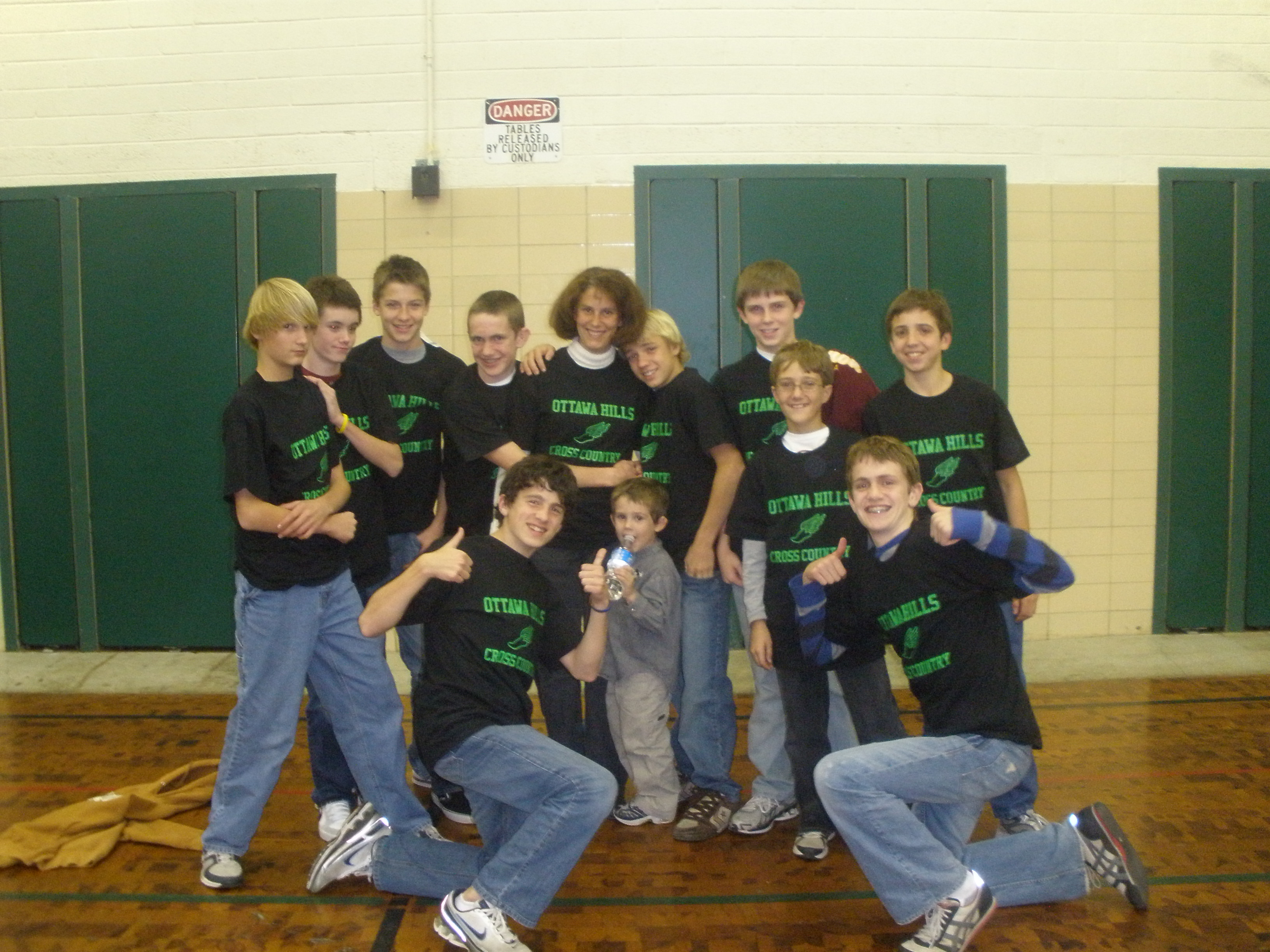 "We designed t-shirts for the boys' jr high cross country team. They were given as a surprise to them at the end of the season banquet. They had an exceptional year, so these were their "wearable trophies" featuring the season record on the back of the shirts. Needless to say they were a big hit!"