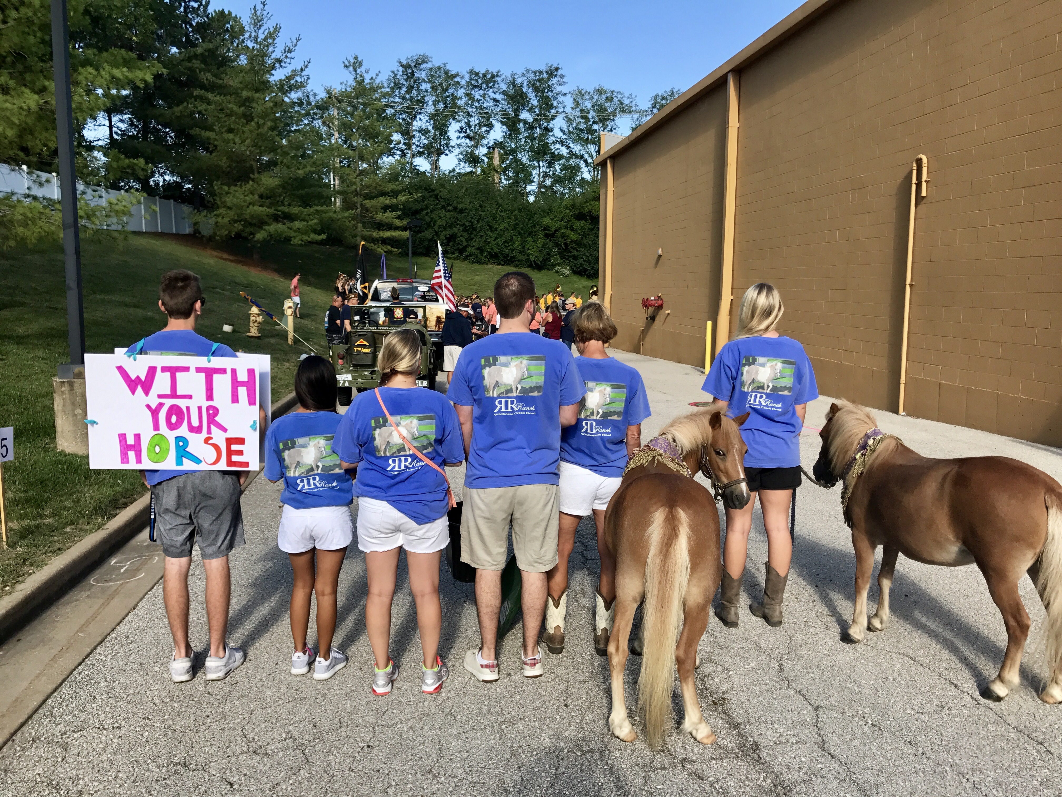 "We have 13 miniature horses, all of whom are rescued from abuse or neglect. These two (you can't really see the one in front) were feral when we brought them home nearly three years ago. However, they have come a long way and we have been practicing for weeks how to walk in a parade and deal with noises and obstacles. Today was the parade and they were. Org super stars! The CustomInk t-shirts was a fun way to identify ourselves (this is all family with two friends). We order our custom logo with a different one of our horses featured on the third once or twice per year. Love them (the horses and the t-shirts ;)"