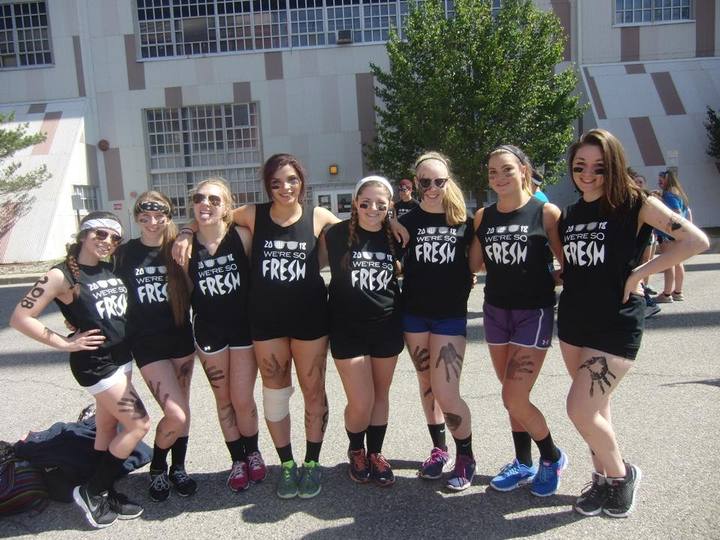 "Our school (Performing Arts Academy) had a school picnic/field day on 5/22/15. This is a picture of some of the freshmen before they headed over to the park to compete."